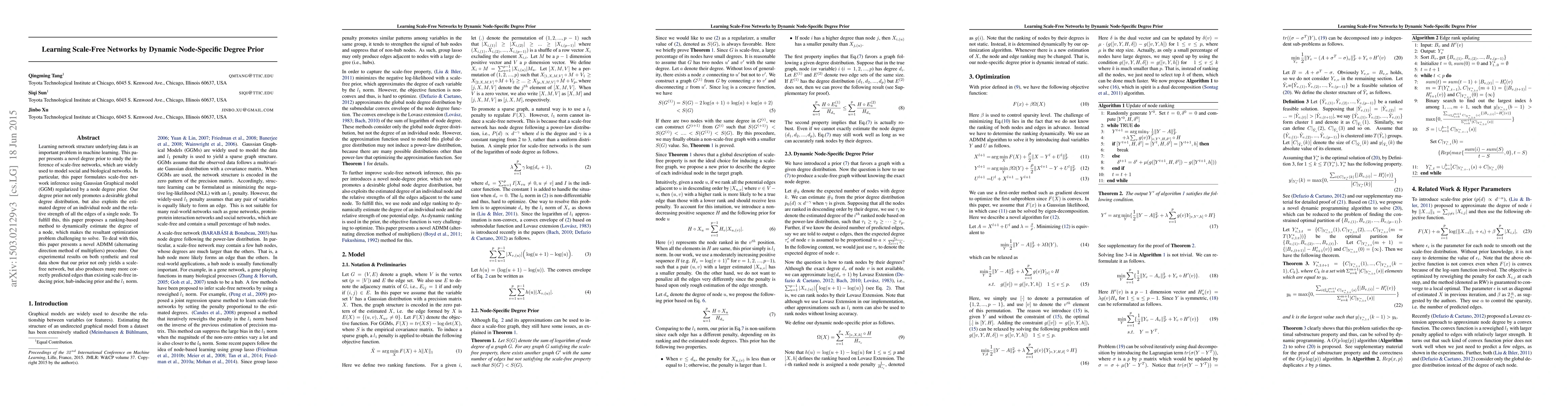 This paper proposes a dynamic node-specific degree prior to infer scale-free network structures, incorporating ranking to consider individual node strengths and degrees. An ADMM framework is used to solve the Gaussian Graphical model, demonstrating superior edge prediction performance on synthetic and real data compared to other methods.