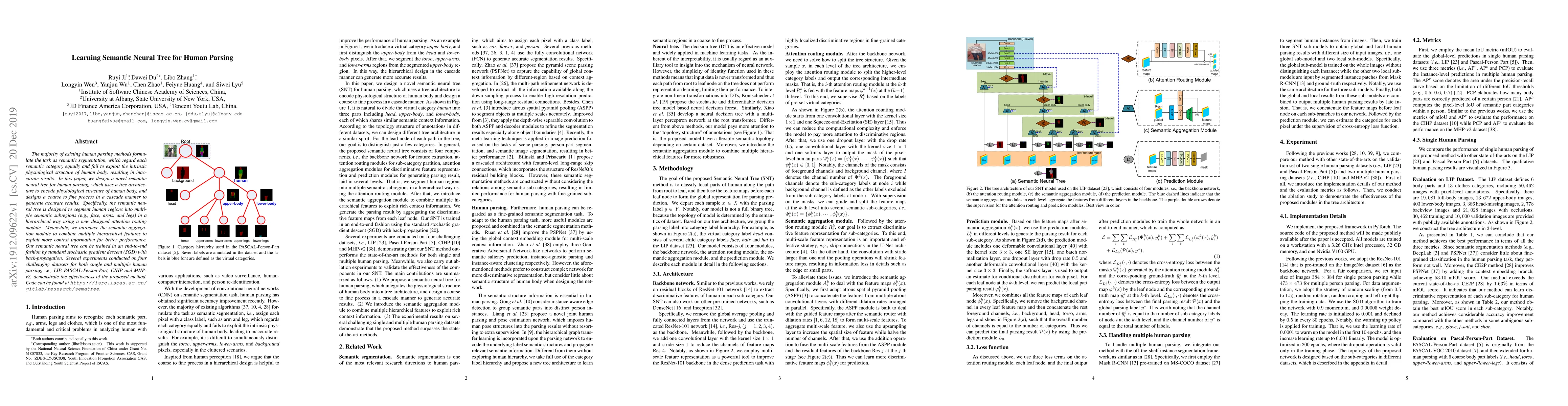 This paper proposes a novel semantic neural tree for human parsing that leverages a tree architecture to encode the physiological structure of the human body, employing a hierarchical and attention-based approach for accurate segmentation. Experiments show improved performance on several datasets compared to traditional segmentation methods.