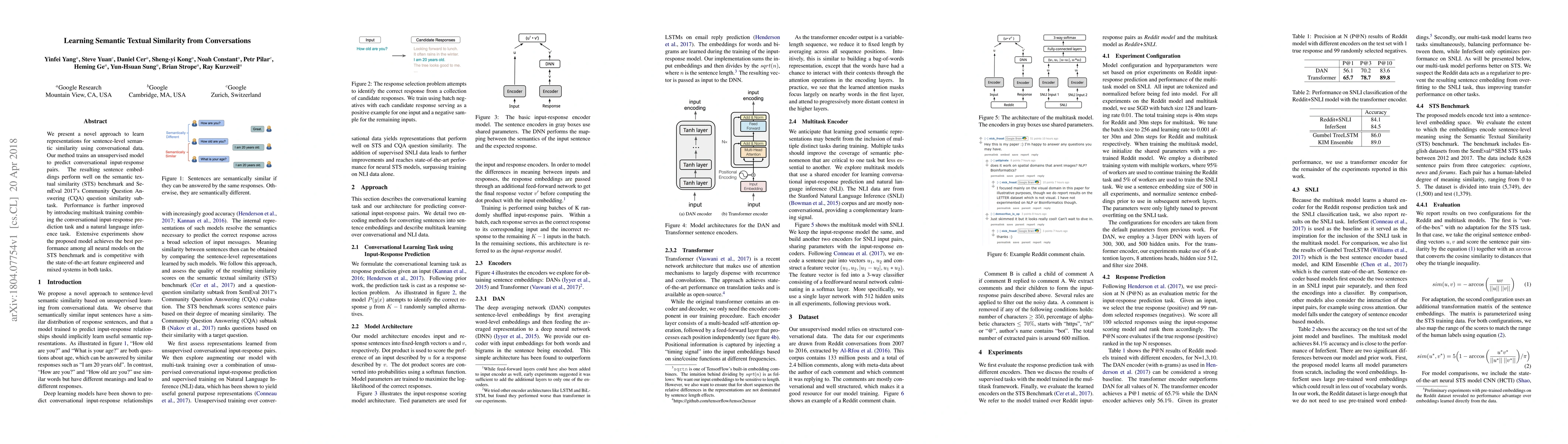 The research presents a novel approach to learn sentence-level semantic similarity representations using conversational data. It trains an unsupervised model to predict conversational input-response pairs, and further improves performance by introducing multitask training combining input-response prediction and natural language inference tasks.