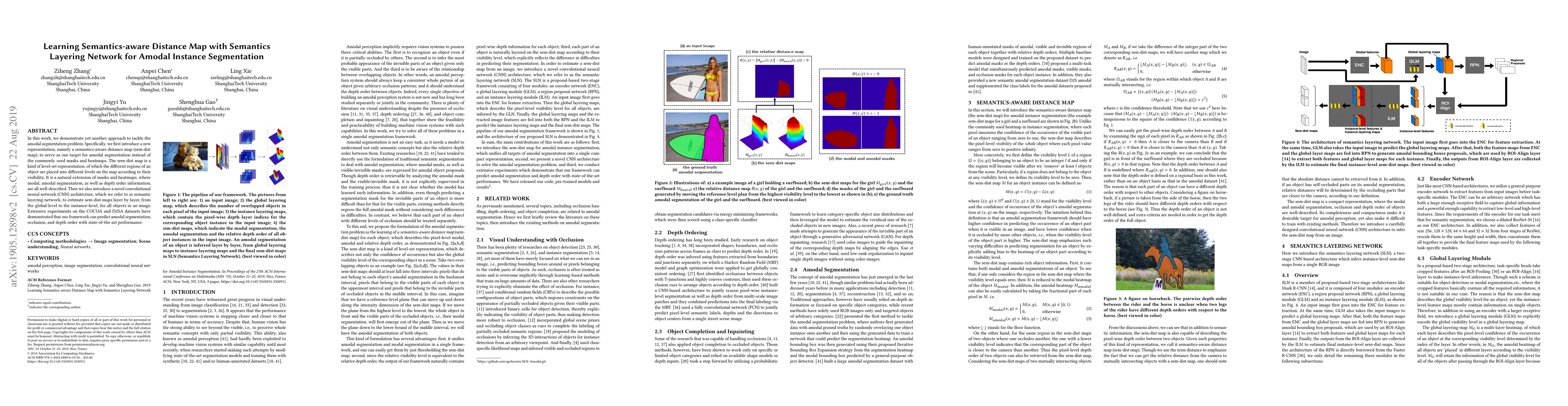 This paper proposes a semantics-aware distance map (sem-dist map) for amodal instance segmentation, extending beyond traditional masks and heatmaps. It introduces a semantic layering network, a CNN architecture that estimates sem-dist maps layer by layer, achieving state-of-the-art performance in amodal segmentation, occlusion, and depth order prediction on COCOA and D2SA datasets.