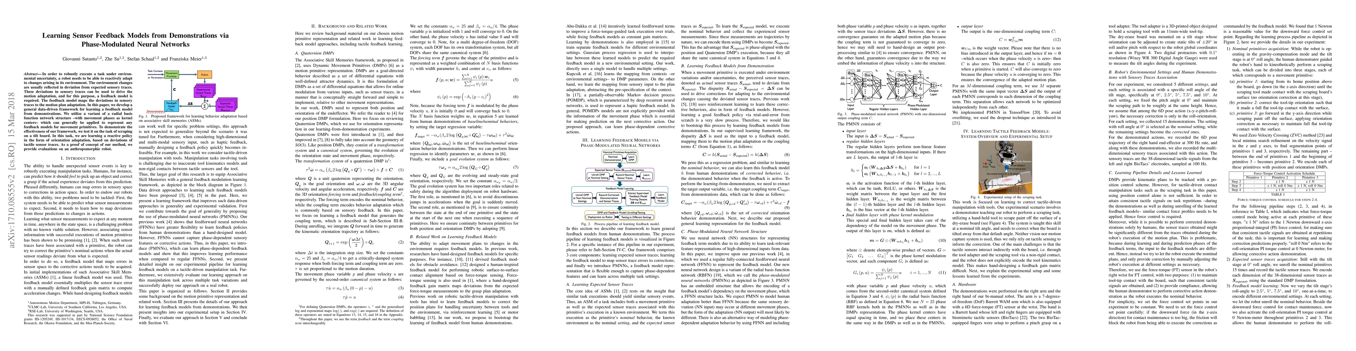 This paper presents a data-driven framework for learning sensor feedback models from demonstrations using phase-modulated neural networks. The approach is tested on a scraping task on a tilt board, demonstrating effective reactive orientation adaptation based on tactile sensor deviations.