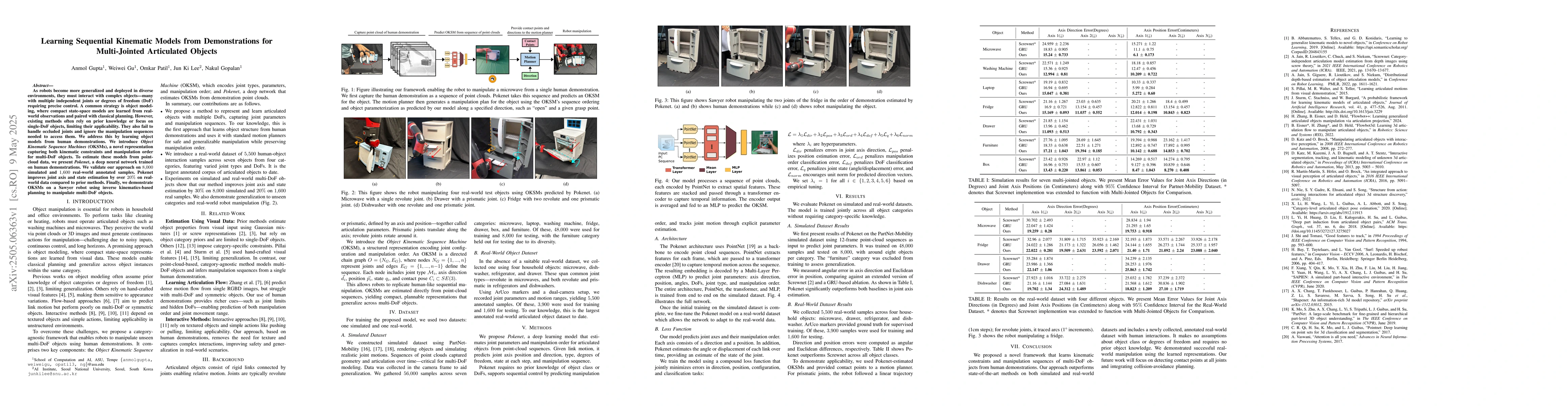 This research is important as it addresses the challenge of robots interacting with complex, multi-jointed objects in diverse environments by learning object models from human demonstrations, thereby reducing reliance on prior knowledge and enabling better handling of occluded joints and manipulation sequences.