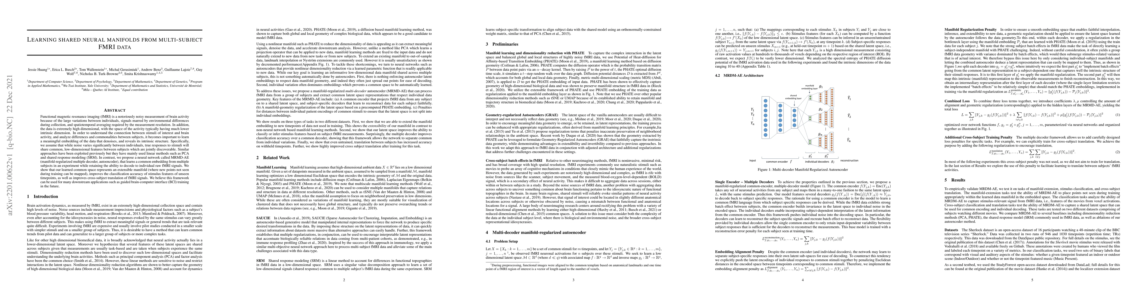 This paper proposes a neural network, MRMD-AE, to learn a shared neural manifold from multi-subject fMRI data, aiming to denoise and reveal intrinsic structures despite individual variations. The method improves classification accuracy and cross-subject fMRI signal translation, suggesting potential for applications like brain-computer interfaces.