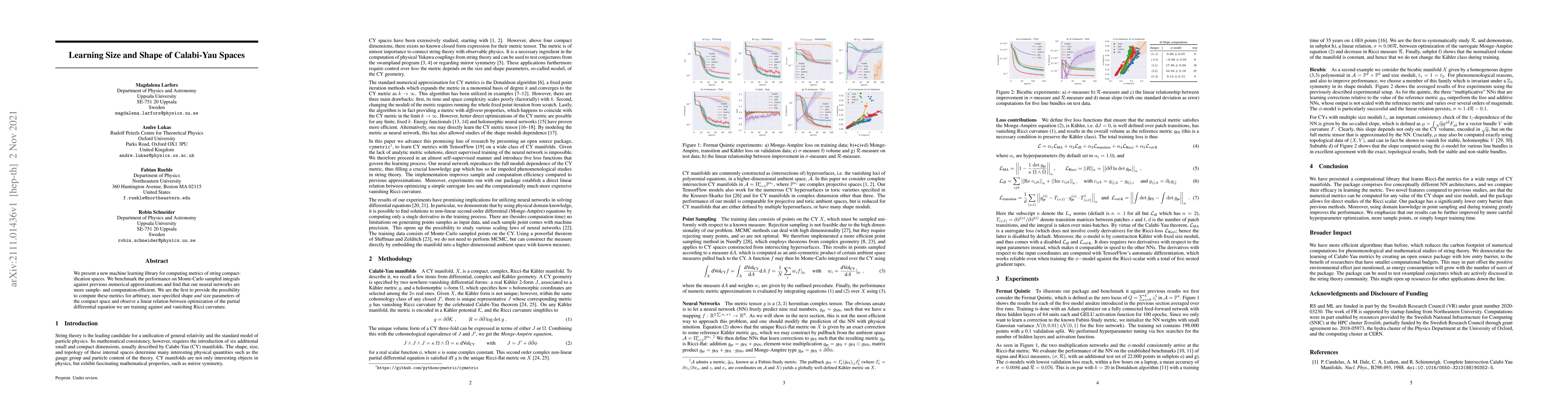 We present a new machine learning library for computing metrics of string compactification spaces. We benchmark the performance on Monte-Carlo sampled integrals against previous numerical approximations and find that our neural networks are more sample- and computation-efficient. We are the first to provide the possibility to compute these metrics for arbitrary, user-specified shape and size parameters of the compact space and observe a linear relation between optimization of the partial differential equation we are training against and vanishing Ricci curvature.