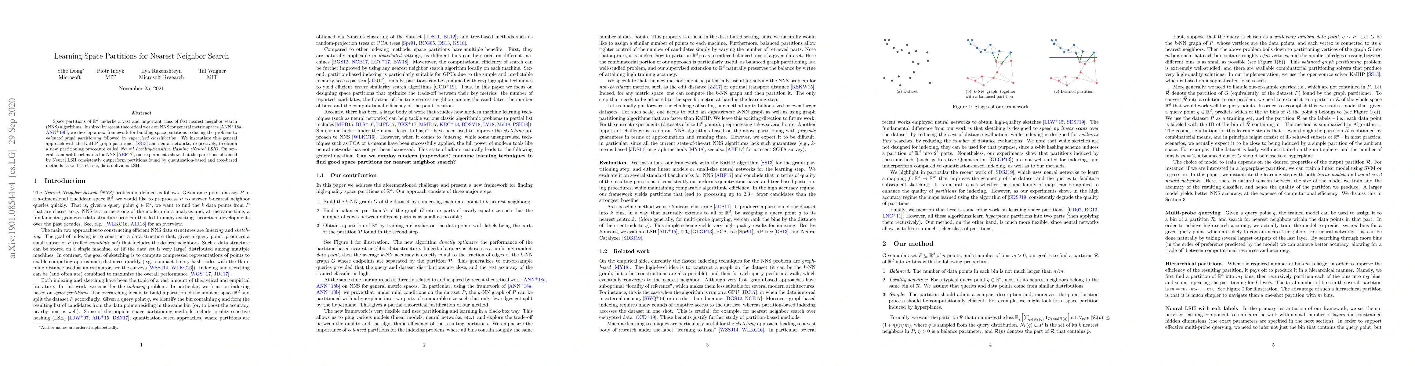 This paper introduces a novel framework for constructing space partitions for efficient nearest neighbor search, reducing the problem to balanced graph partitioning and supervised classification. The proposed Neural Locality-Sensitive Hashing (Neural LSH) method, utilizing the KaHIP partitioner and neural networks, outperforms existing quantization-based, tree-based, and classic LSH methods on standard benchmarks.