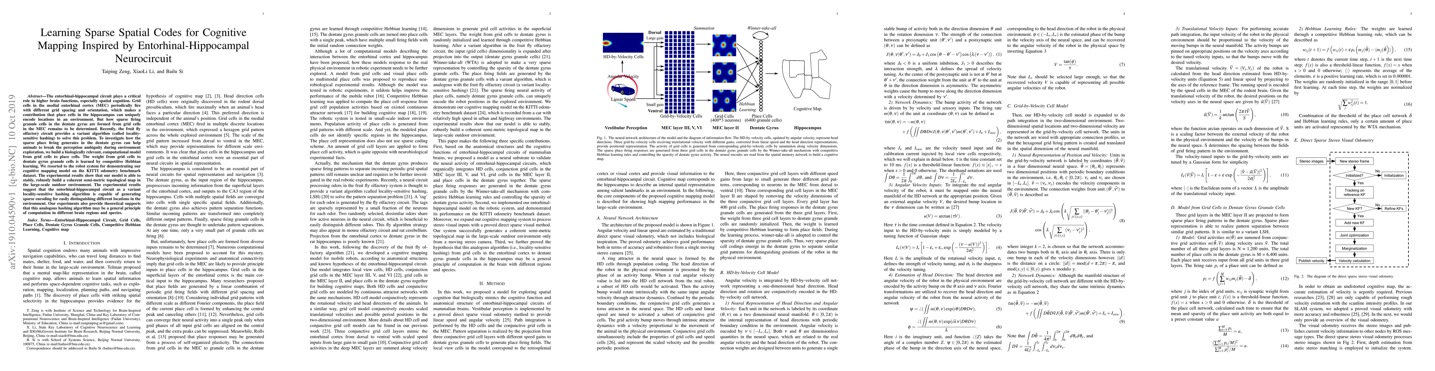 This paper develops a computational model inspired by the entorhinal-hippocampal neurocircuit to learn sparse spatial codes from grid cells, analogous to how place cells encode locations. Experimental results on a robot system demonstrate the model's ability to create a robust topological map, suggesting this locality-sensitive hashing algorithm may be a universal computational principle in spatial cognition.