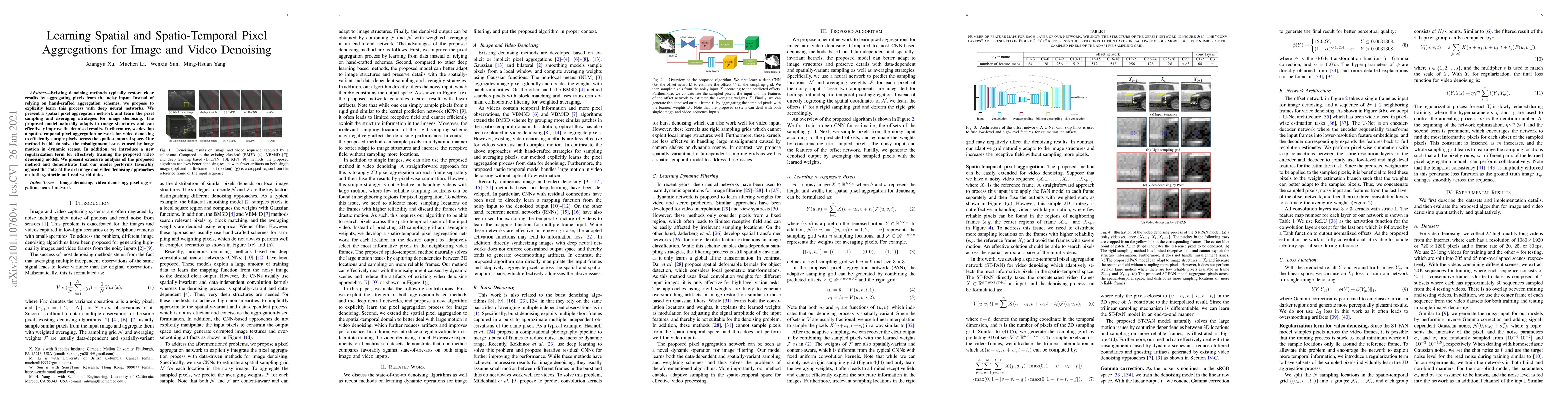 A new deep learning approach for image and video denoising is proposed, which learns to aggregate pixels in a spatial and spatio-temporal manner, overcoming issues with existing methods.