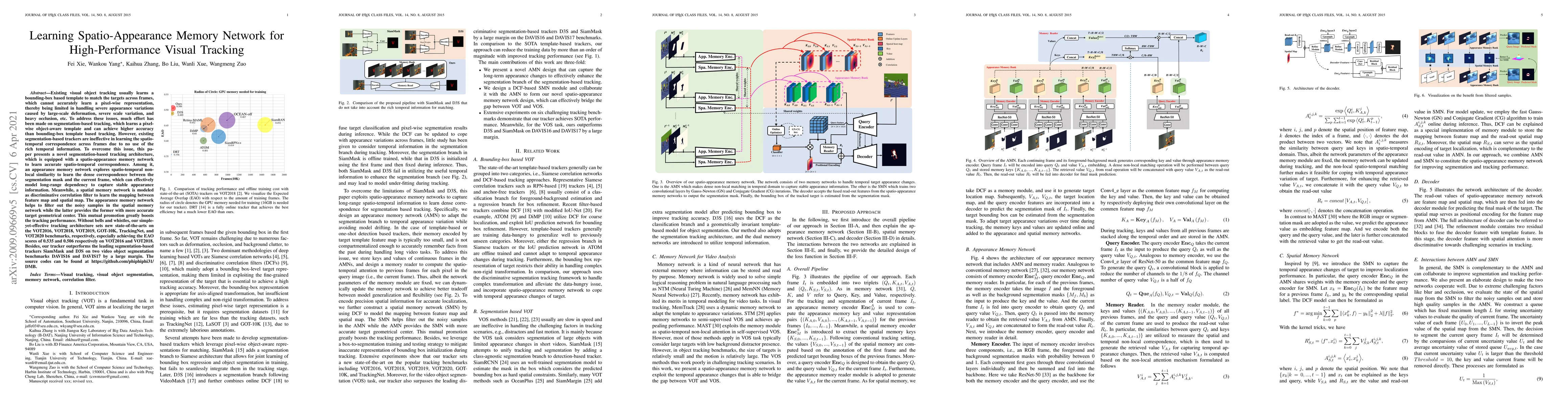 This paper introduces a novel segmentation-based tracking architecture with a spatio-appearance memory network to enhance accuracy in handling severe appearance variations. It combines an appearance memory network and a spatial memory network to learn dense spatio-temporal correspondence, achieving state-of-the-art performance on multiple tracking benchmarks.