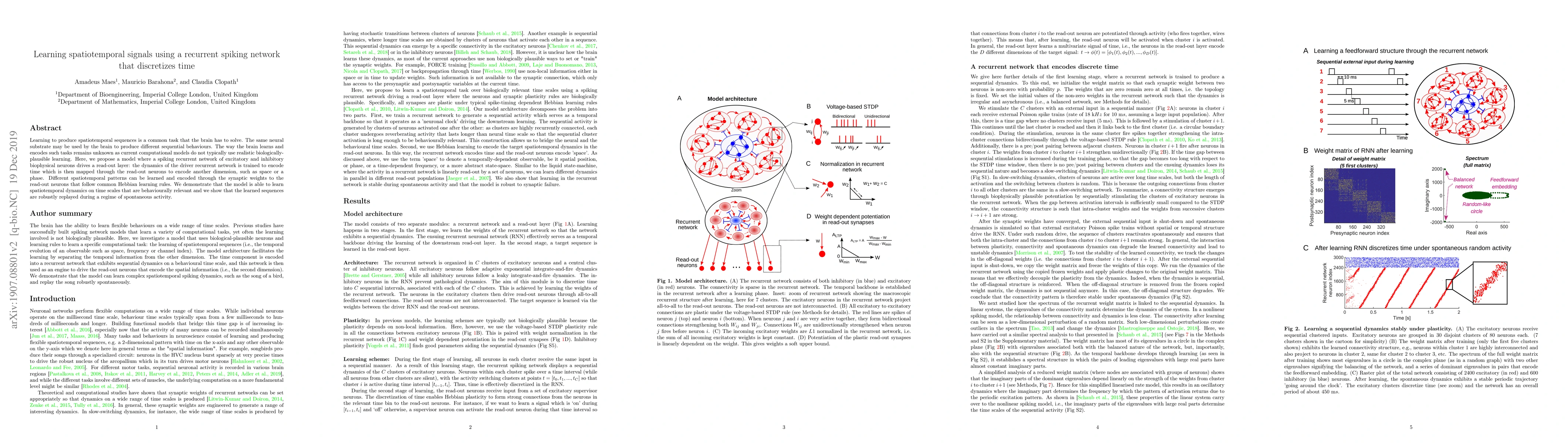 Researchers propose a model that uses a spiking neural network to learn and encode spatiotemporal patterns, demonstrating the ability to replay learned sequences during spontaneous activity.