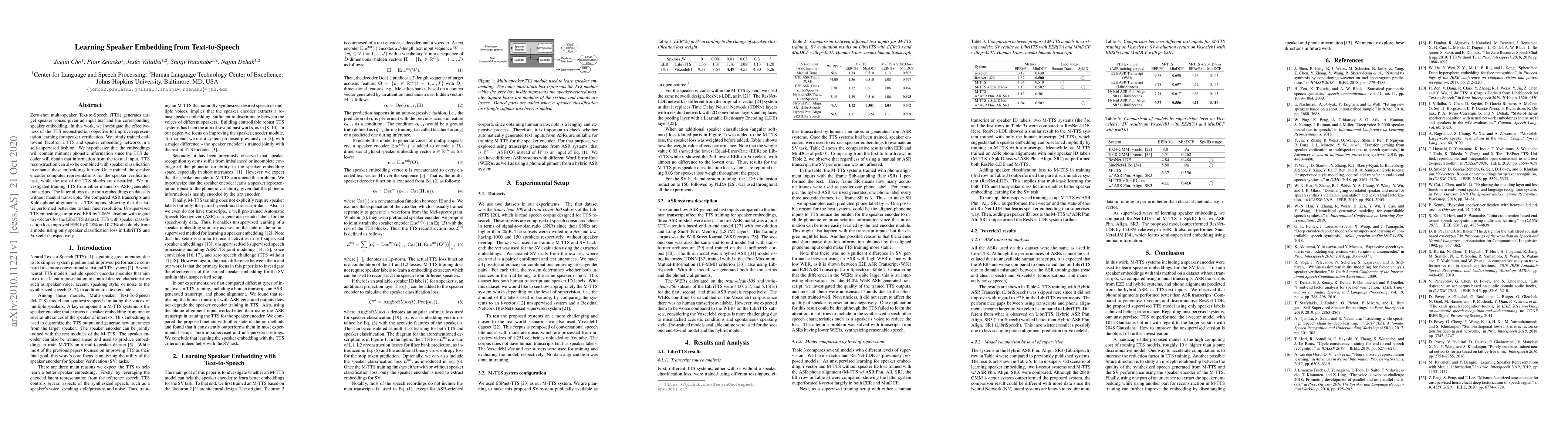 This paper explores learning speaker embeddings from text-to-speech (TTS) models to enhance speaker verification. The authors propose a self-supervised training method combining Tacotron 2 TTS and speaker embedding networks, showing that TTS reconstruction and speaker classification losses improve embeddings, achieving better Equal Error Rate (EER) compared to traditional methods.