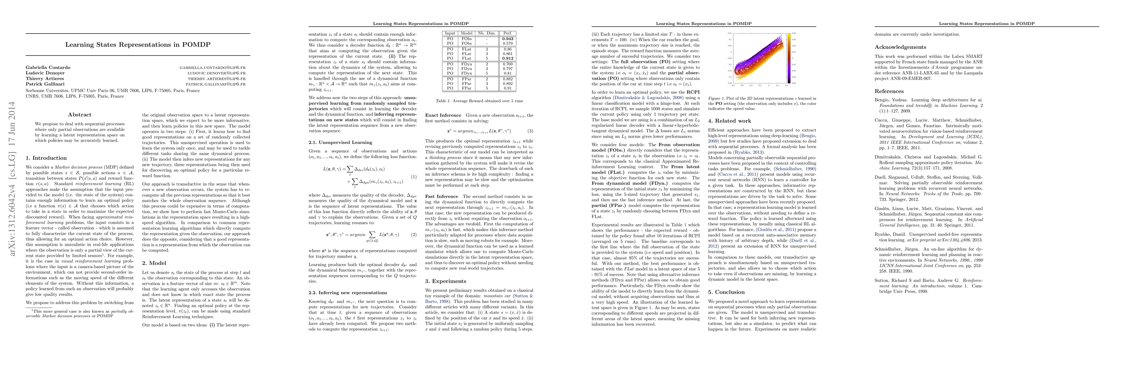 We propose to deal with sequential processes where only partial observations are available by learning a latent representation space on which policies may be accurately learned.