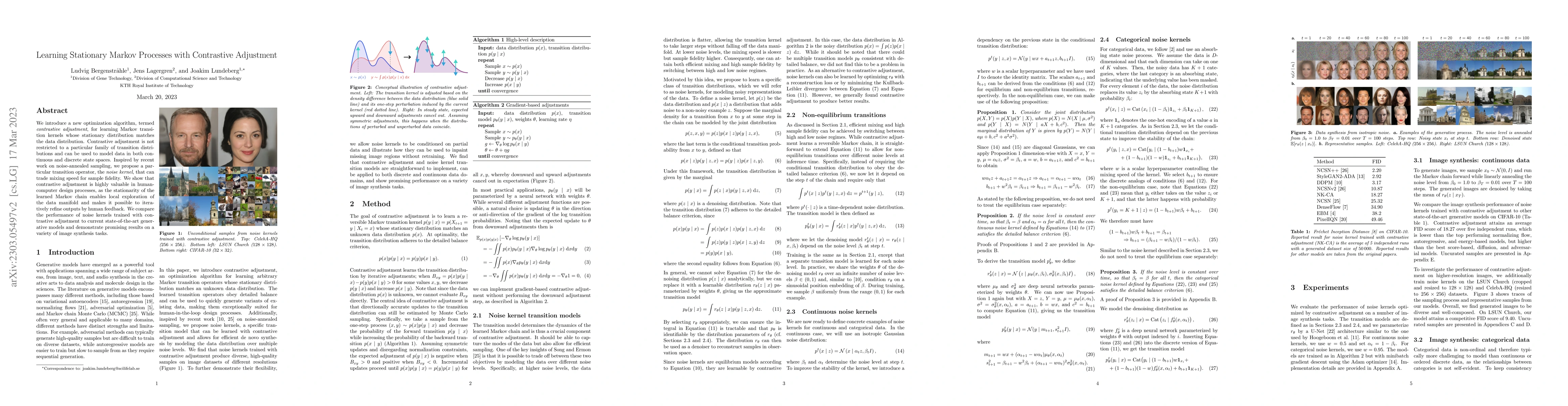 This paper introduces a novel optimization algorithm called contrastive adjustment for learning Markov transition kernels that match data distributions. The method is versatile for both continuous and discrete state spaces and can refine outputs iteratively with human feedback, showing promising results in image synthesis tasks compared to state-of-the-art generative models.