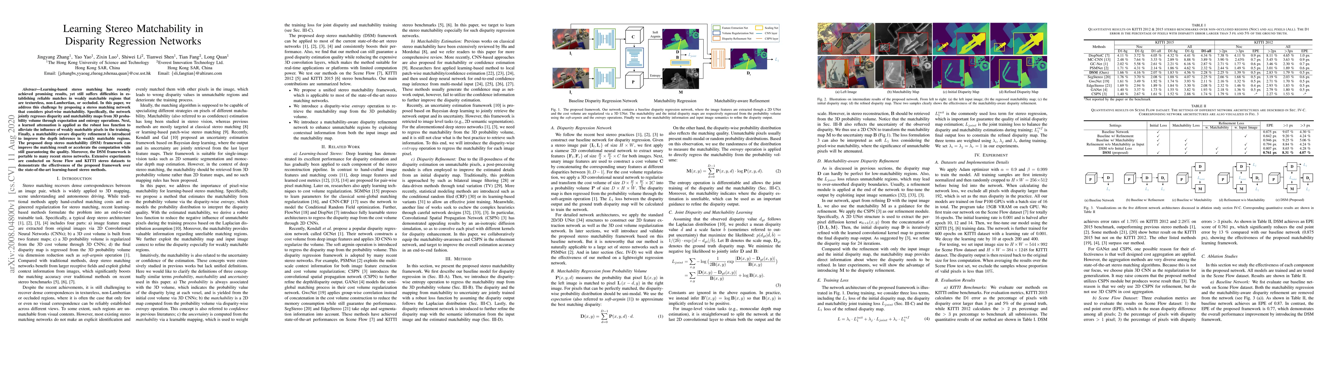 This paper proposes a deep stereo matchability (DSM) framework to improve learning-based stereo matching by jointly regressing disparity and matchability maps, using a robust loss function to handle weakly matchable regions, and refining disparity to enhance depth inference in these areas. The DSM framework outperforms state-of-the-art methods on Scene Flow and KITTI datasets.