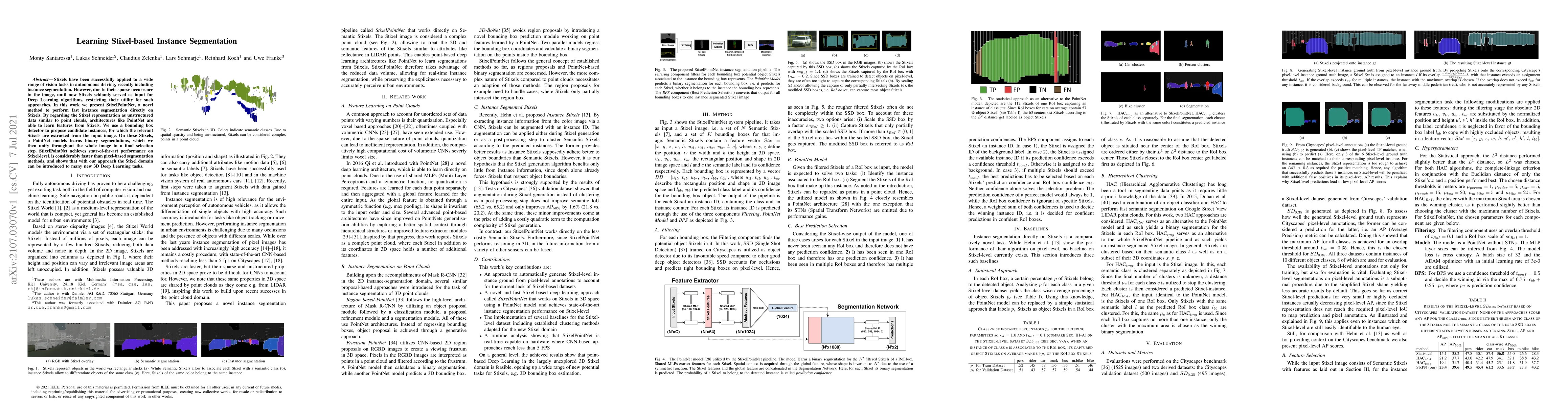 This paper introduces StixelPointNet, a novel method for fast instance segmentation using Stixels, leveraging PointNet to learn features from Stixel data treated as unstructured point clouds. The method achieves state-of-the-art performance and is significantly faster than pixel-based segmentation techniques.