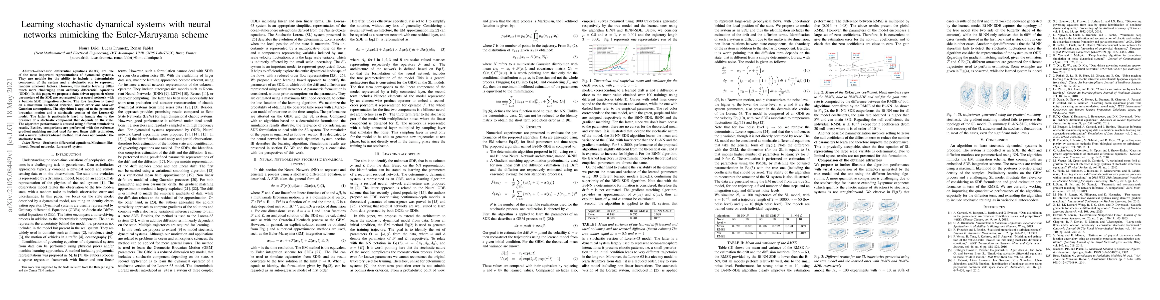 A new approach to learning stochastic dynamical systems using neural networks that mimic the Euler-Maruyama scheme is proposed, showing promise in handling complex models like geometric brownian motion and Lorenz-63.