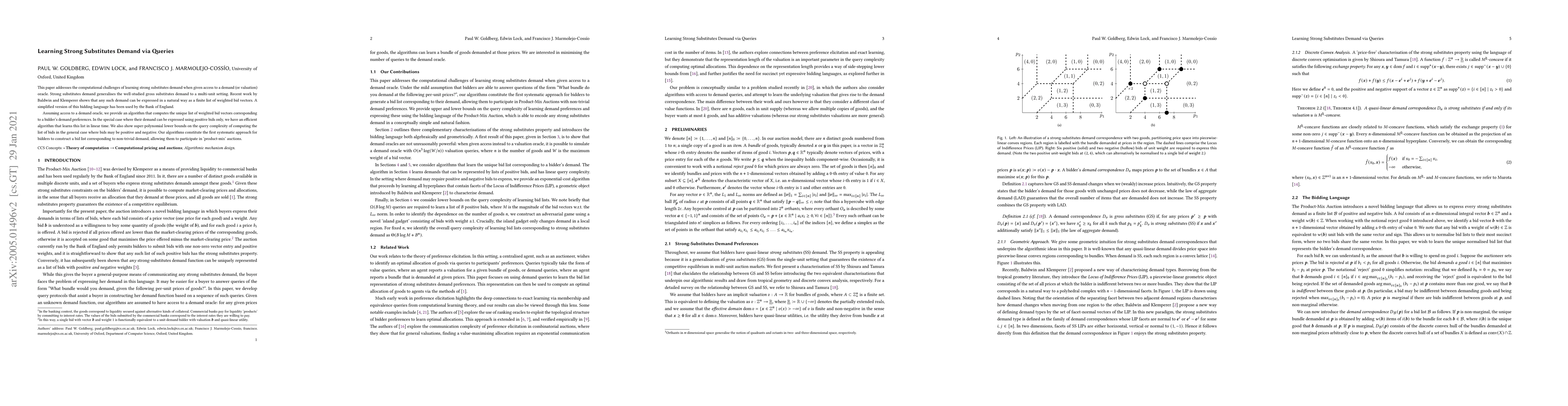 This paper addresses the computational challenges of learning strong substitutes demand when given access to a demand (or valuation) oracle. Strong substitutes demand generalises the well-studied gross substitutes demand to a multi-unit setting. Recent work by Baldwin and Klemperer shows that any such demand can be expressed in a natural way as a finite list of weighted bid vectors. A simplified version of this bidding language has been used by the Bank of England. Assuming access to a demand oracle, we provide an algorithm that computes the unique list of weighted bid vectors corresponding to a bidder's demand preferences. In the special case where their demand can be expressed using positive bids only, we have an efficient algorithm that learns this list in linear time. We also show super-polynomial lower bounds on the query complexity of computing the list of bids in the general case where bids may be positive and negative. Our algorithms constitute the first systematic approach for bidders to construct a bid list corresponding to non-trivial demand, allowing them to participate in `product-mix' auctions.