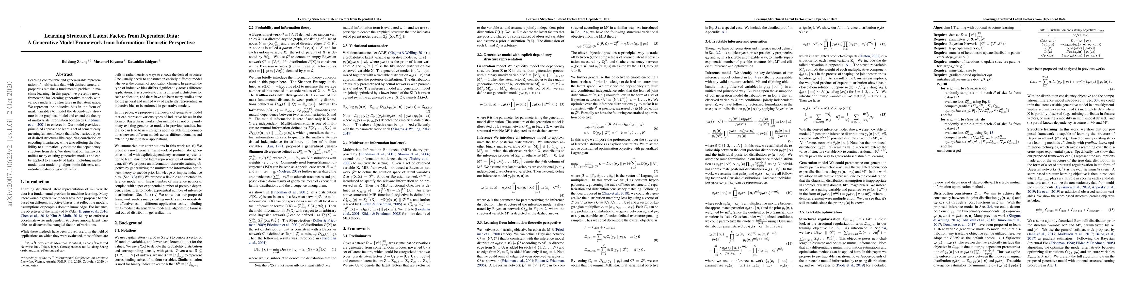 Learning controllable and generalizable representation of multivariate data with desired structural properties remains a fundamental problem in machine learning. In this paper, we present a novel framework for learning generative models with various underlying structures in the latent space. We represent the inductive bias in the form of mask variables to model the dependency structure in the graphical model and extend the theory of multivariate information bottleneck to enforce it. Our model provides a principled approach to learn a set of semantically meaningful latent factors that reflect various types of desired structures like capturing correlation or encoding invariance, while also offering the flexibility to automatically estimate the dependency structure from data. We show that our framework unifies many existing generative models and can be applied to a variety of tasks including multi-modal data modeling, algorithmic fairness, and invariant risk minimization.