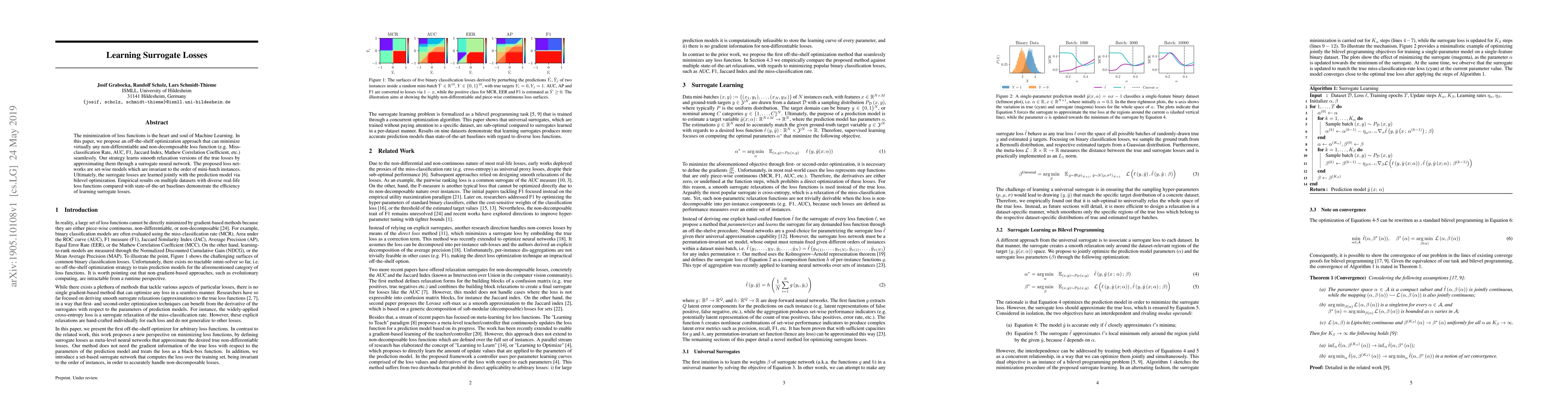 The minimization of loss functions is the heart and soul of Machine Learning. In this paper, we propose an off-the-shelf optimization approach that can minimize virtually any non-differentiable and non-decomposable loss function (e.g. Miss-classification Rate, AUC, F1, Jaccard Index, Mathew Correlation Coefficient, etc.) seamlessly. Our strategy learns smooth relaxation versions of the true losses by approximating them through a surrogate neural network. The proposed loss networks are set-wise models which are invariant to the order of mini-batch instances. Ultimately, the surrogate losses are learned jointly with the prediction model via bilevel optimization. Empirical results on multiple datasets with diverse real-life loss functions compared with state-of-the-art baselines demonstrate the efficiency of learning surrogate losses.