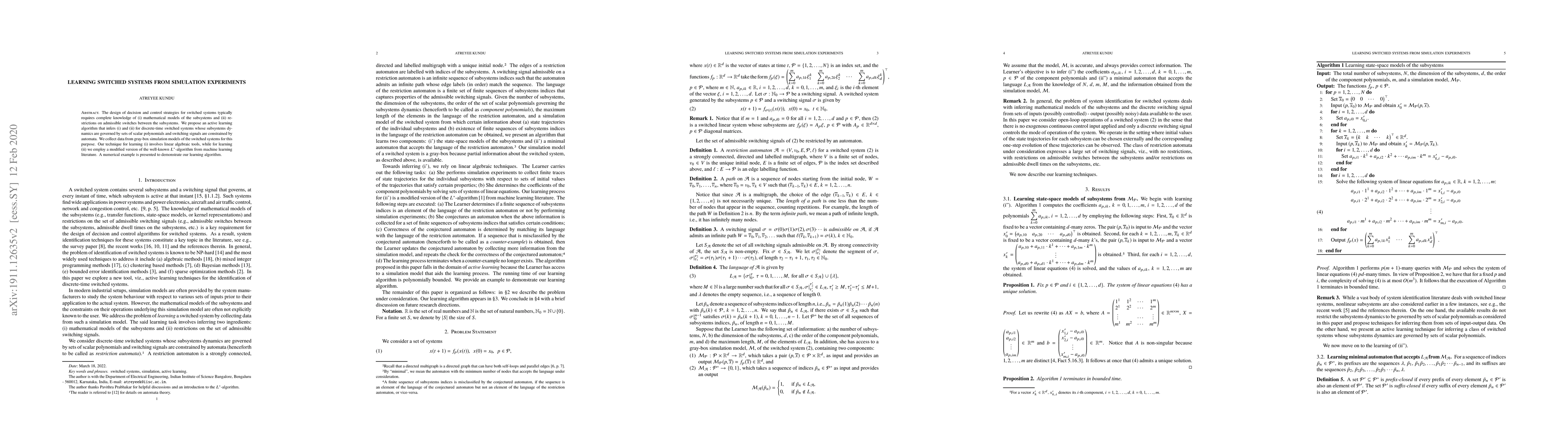 Researchers propose an active learning algorithm to learn decision and control strategies for switched systems from simulation models, allowing for efficient inference of system dynamics and switching restrictions.