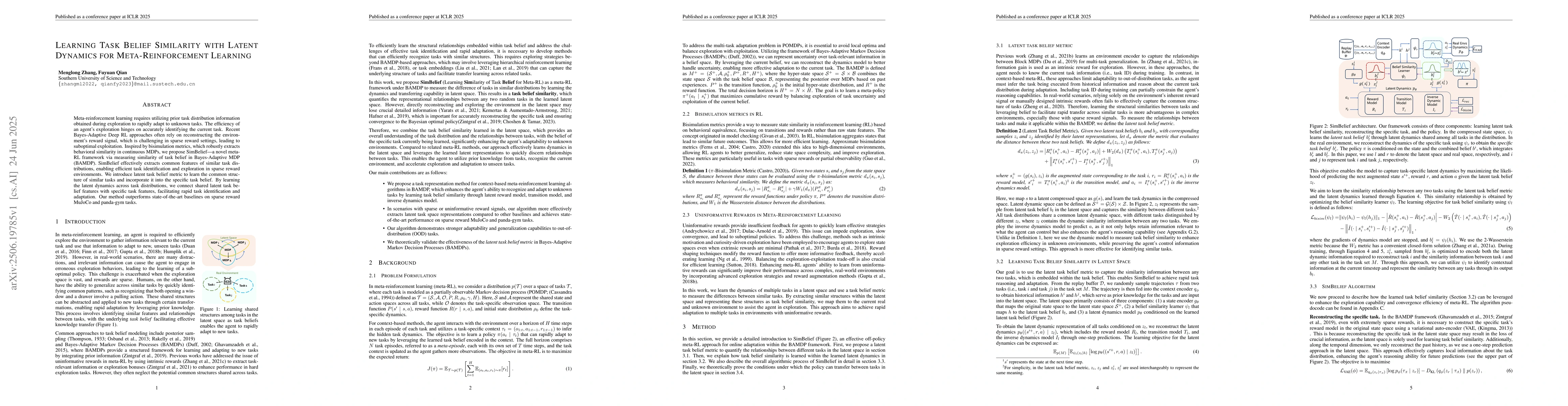The research introduces SimBelief, a meta-RL framework that measures task belief similarity using latent dynamics. This method effectively identifies tasks in sparse reward environments by learning common features across similar tasks, outperforming existing baselines in challenging MuJoCo and panda-gym tasks.