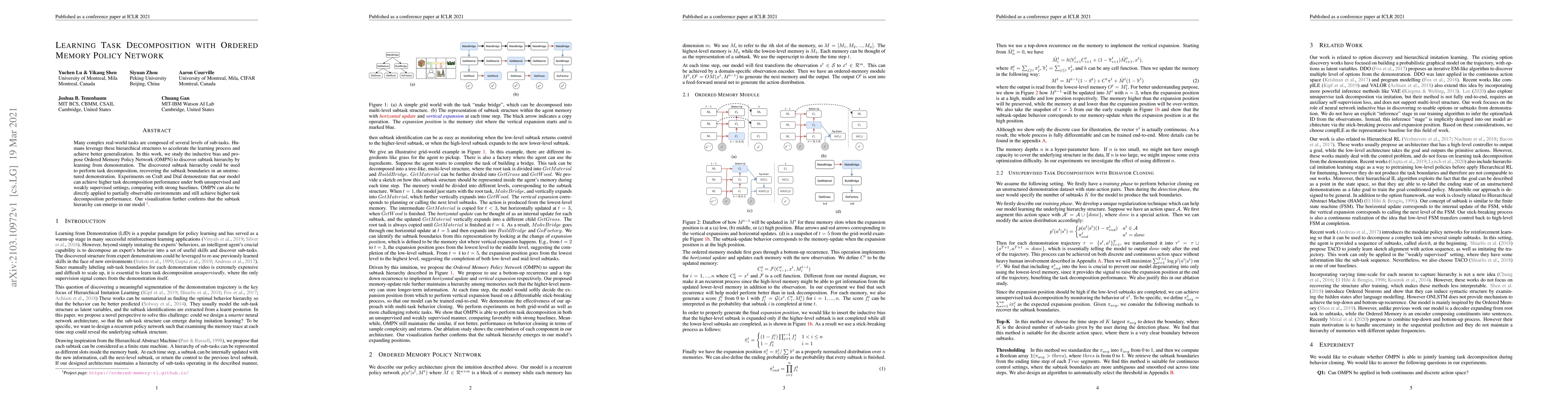 A new AI model called Ordered Memory Policy Network (OMPN) helps machines discover subtasks in complex tasks by learning from demonstration data, achieving higher task decomposition performance than existing models.