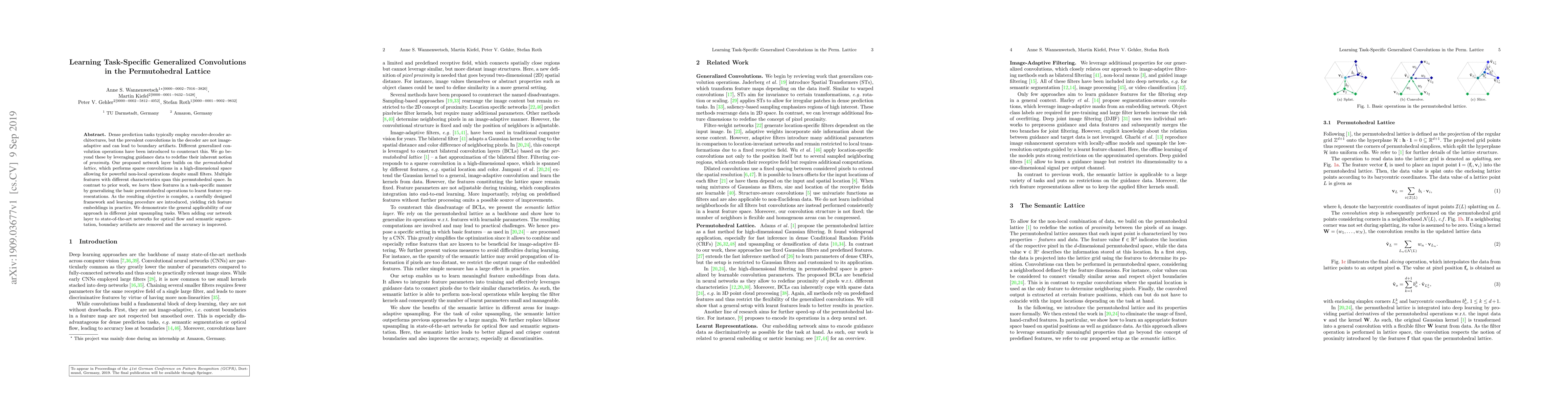 Dense prediction tasks typically employ encoder-decoder architectures, but the prevalent convolutions in the decoder are not image-adaptive and can lead to boundary artifacts. Different generalized convolution operations have been introduced to counteract this. We go beyond these by leveraging guidance data to redefine their inherent notion of proximity. Our proposed network layer builds on the permutohedral lattice, which performs sparse convolutions in a high-dimensional space allowing for powerful non-local operations despite small filters. Multiple features with different characteristics span this permutohedral space. In contrast to prior work, we learn these features in a task-specific manner by generalizing the basic permutohedral operations to learnt feature representations. As the resulting objective is complex, a carefully designed framework and learning procedure are introduced, yielding rich feature embeddings in practice. We demonstrate the general applicability of our approach in different joint upsampling tasks. When adding our network layer to state-of-the-art networks for optical flow and semantic segmentation, boundary artifacts are removed and the accuracy is improved.