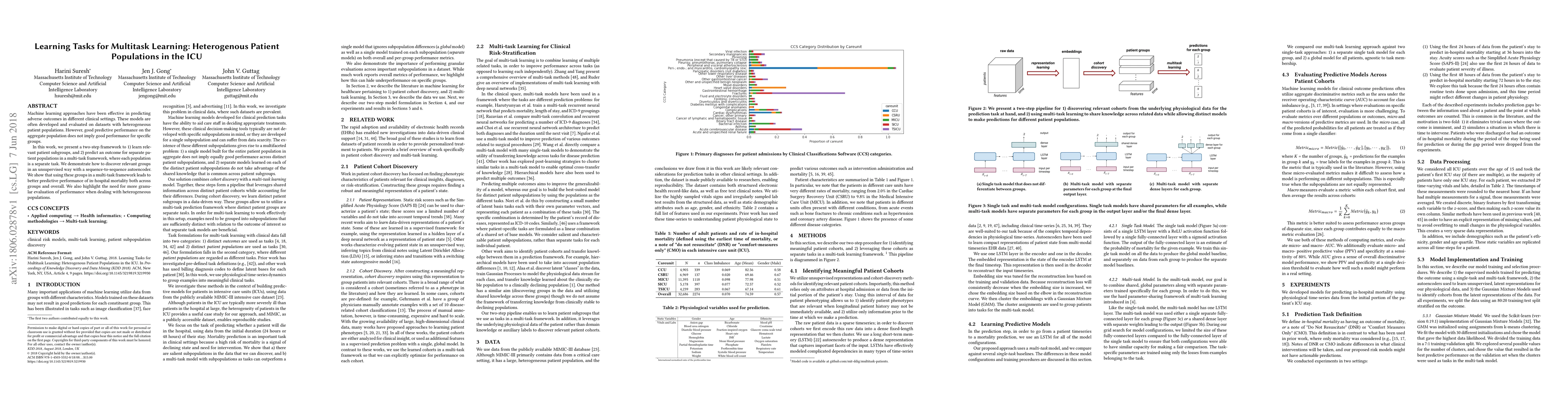 Machine learning approaches have been effective in predicting adverse outcomes in different clinical settings. These models are often developed and evaluated on datasets with heterogeneous patient populations. However, good predictive performance on the aggregate population does not imply good performance for specific groups. In this work, we present a two-step framework to 1) learn relevant patient subgroups, and 2) predict an outcome for separate patient populations in a multi-task framework, where each population is a separate task. We demonstrate how to discover relevant groups in an unsupervised way with a sequence-to-sequence autoencoder. We show that using these groups in a multi-task framework leads to better predictive performance of in-hospital mortality both across groups and overall. We also highlight the need for more granular evaluation of performance when dealing with heterogeneous populations.
