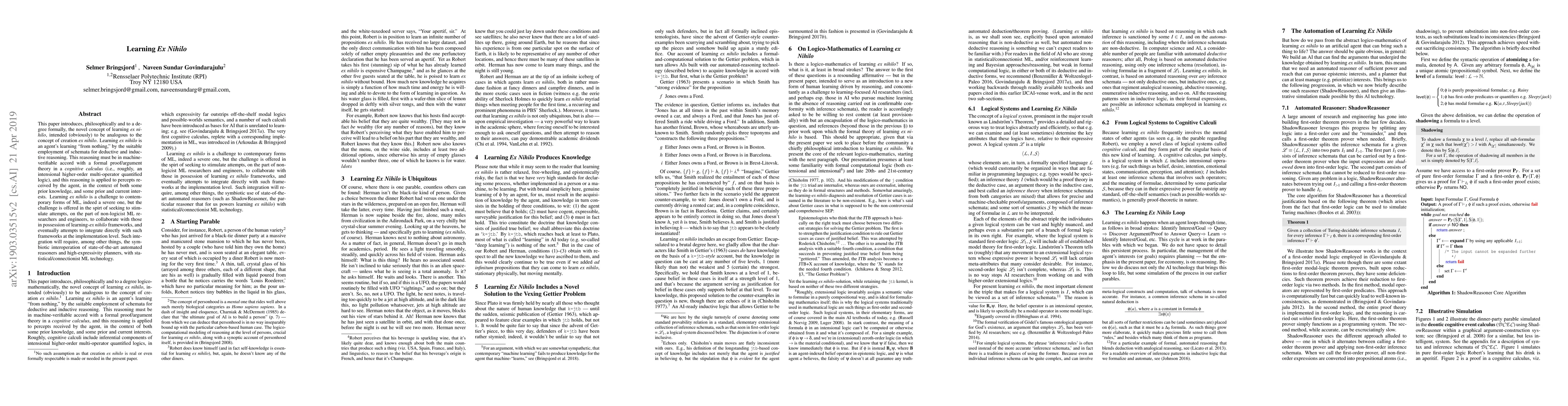 This paper proposes the concept of learning $\textit{ex nihilo}$, akin to creation from nothing, where an agent learns without prior knowledge using deductive and inductive reasoning within a cognitive calculus. It challenges contemporary machine learning methods and encourages collaboration between logic-based and statistical ML researchers to integrate advanced reasoning tools with machine learning techniques.