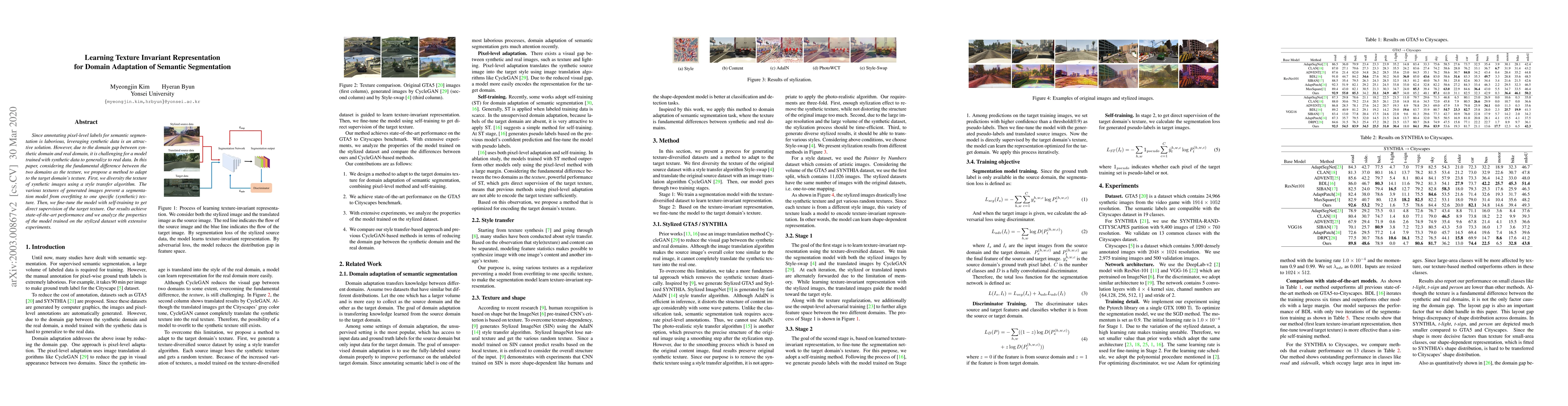 This paper proposes a method to bridge the domain gap between synthetic and real data for semantic segmentation by diversifying the texture of synthetic images using style transfer, followed by self-training fine-tuning. The approach achieves state-of-the-art performance in domain adaptation.