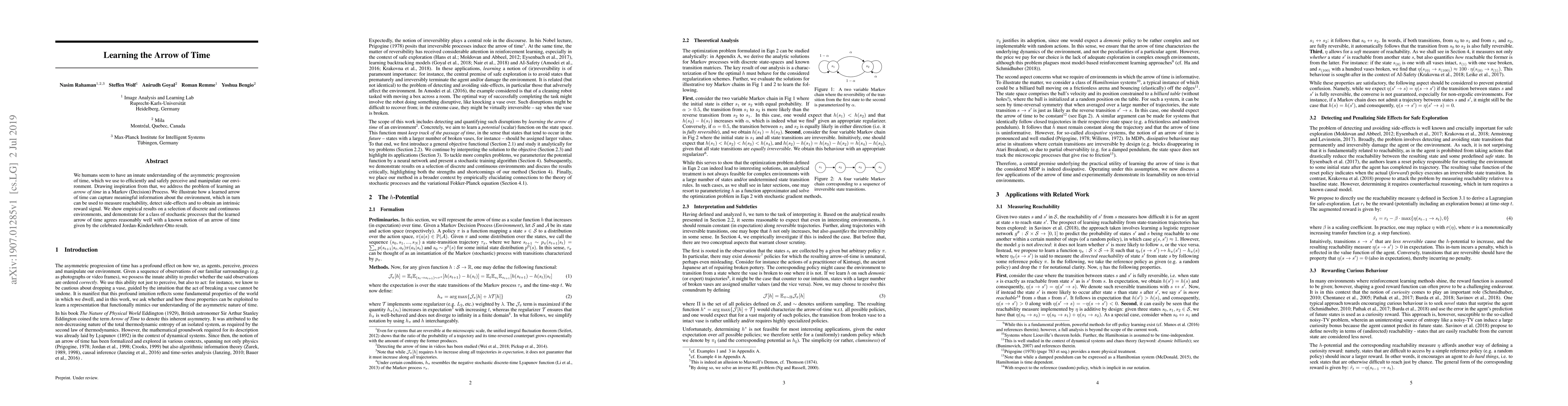 This paper explores how to learn an arrow of time in Markov Decision Processes to capture meaningful environmental information, facilitating reachability assessment, side-effect detection, and intrinsic reward signals. Empirical results in various environments confirm that the learned arrow aligns well with established theoretical notions.