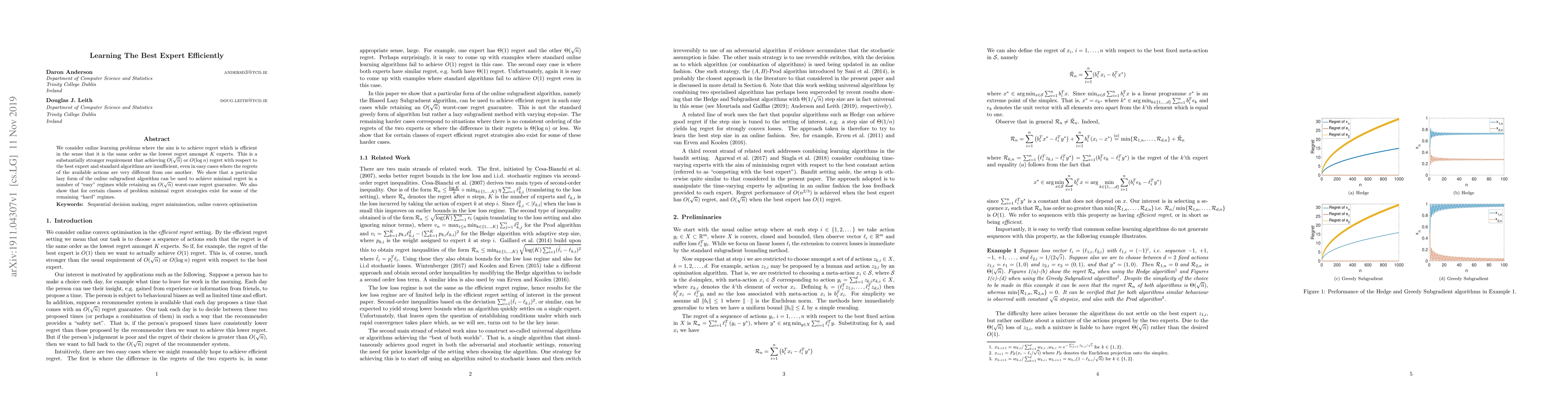 We consider online learning problems where the aim is to achieve regret which is efficient in the sense that it is the same order as the lowest regret amongst K experts. This is a substantially stronger requirement that achieving $O(\sqrt{n})$ or $O(\log n)$ regret with respect to the best expert and standard algorithms are insufficient, even in easy cases where the regrets of the available actions are very different from one another. We show that a particular lazy form of the online subgradient algorithm can be used to achieve minimal regret in a number of "easy" regimes while retaining an $O(\sqrt{n})$ worst-case regret guarantee. We also show that for certain classes of problem minimal regret strategies exist for some of the remaining "hard" regimes.