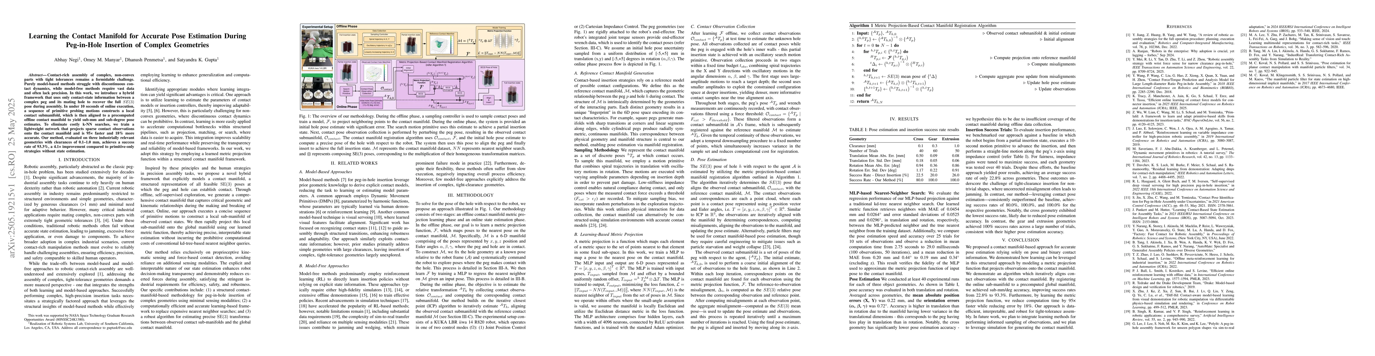 The research introduces a hybrid framework utilizing contact-state information between complex peg and hole geometries to recover full SE(3) pose during assembly. It constructs a local contact submanifold through a sequence of primitive probing motions, aligning it with a precomputed offline contact manifold for precise pose estimation.