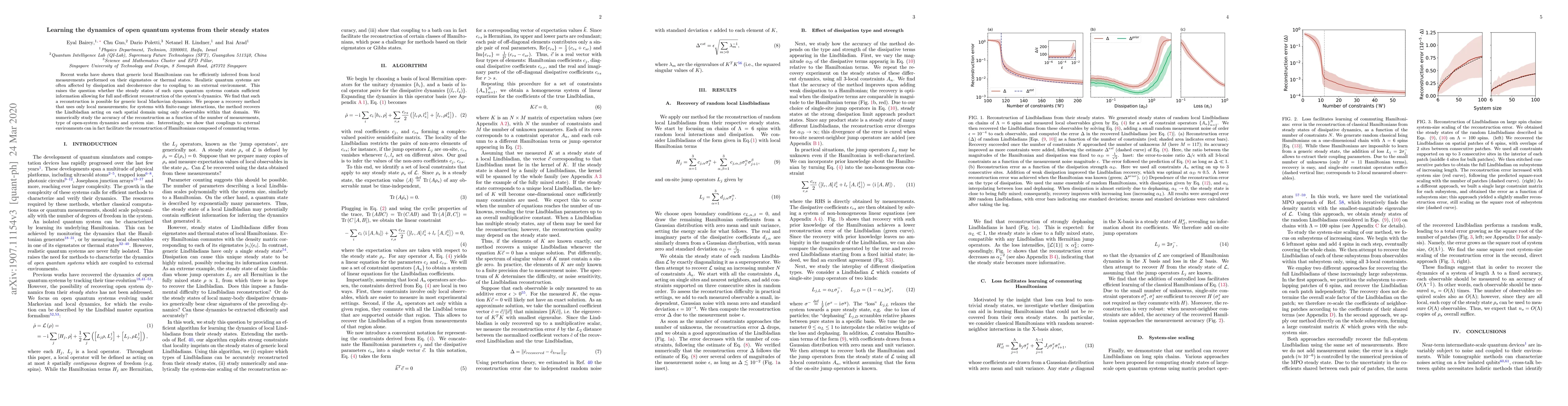 This paper proposes a method to reconstruct the dynamics of open quantum systems from their steady states using local measurements. It demonstrates that for generic local Markovian dynamics, the steady states contain sufficient information to efficiently infer the system's dynamics, even when the system is coupled to an external environment.