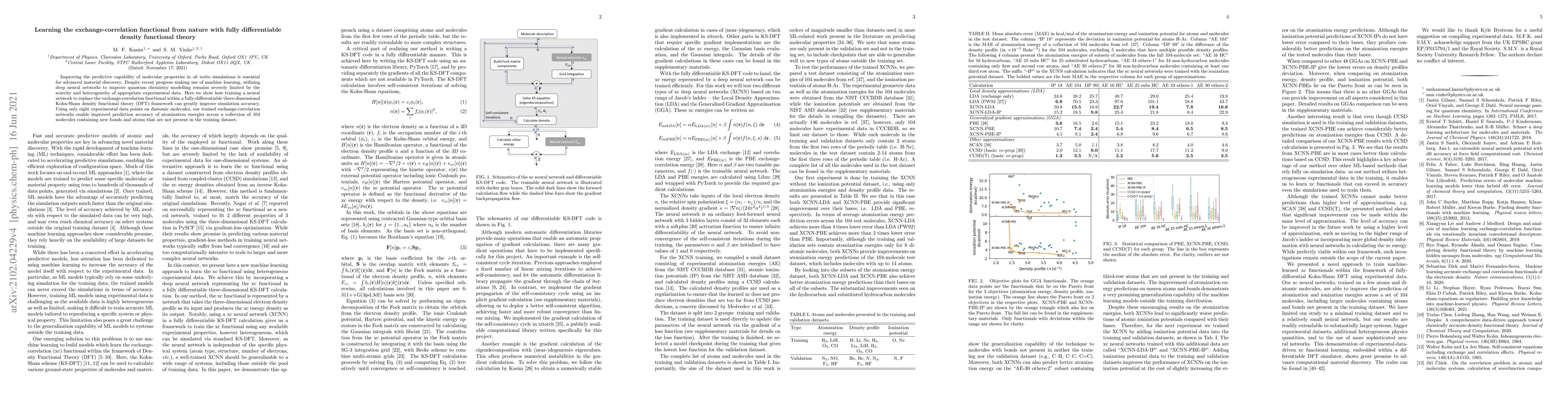 This paper demonstrates how a neural network trained within a fully-differentiable DFT framework can replace the exchange-correlation functional, significantly enhancing the accuracy of molecular property predictions in quantum chemistry simulations. The approach, trained on just eight data points, shows improved atomization energy predictions for a diverse set of molecules not included in the training set.