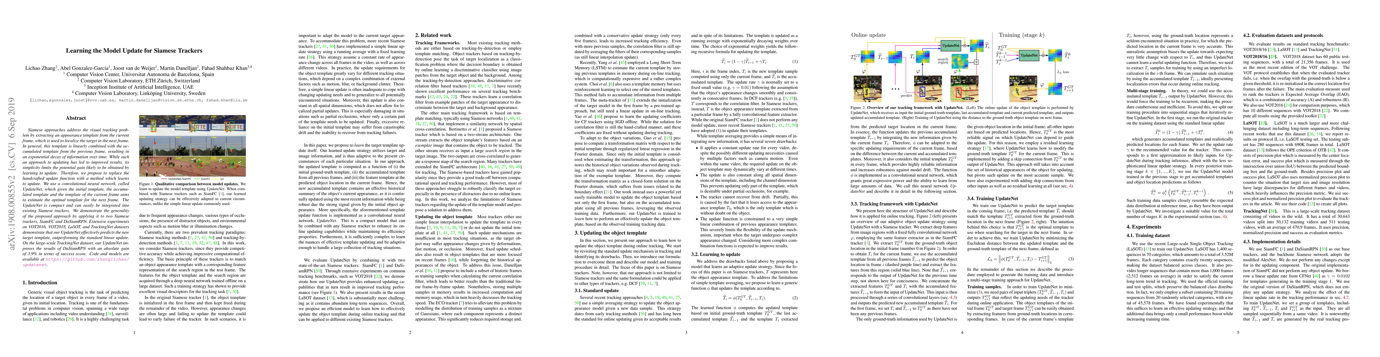 A novel approach to updating visual templates in Siamese trackers is proposed, which uses a convolutional neural network to learn an optimal template update function, outperforming traditional linear updates on multiple datasets.