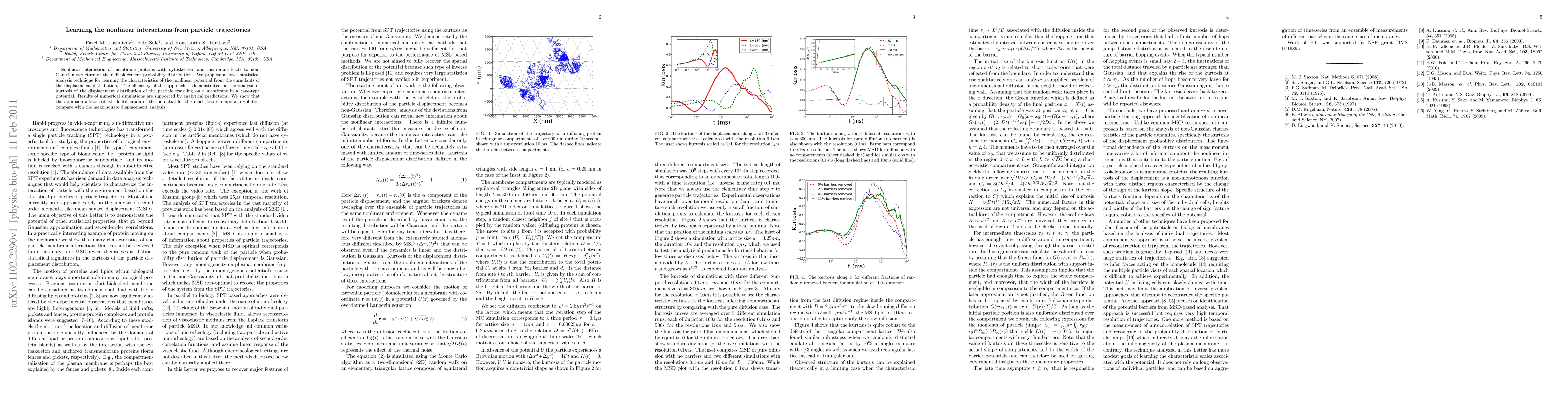 Nonlinear interaction of membrane proteins with cytoskeleton and membrane leads to non-Gaussian structure of their displacement probability distribution. We propose a novel statistical analysis technique for learning the characteristics of the nonlinear potential from the cumulants of the displacement distribution. The efficiency of the approach is demonstrated on the analysis of kurtosis of the displacement distribution of the particle traveling on a membrane in a cage-type potential. Results of numerical simulations are supported by analytical predictions. We show that the approach allows robust identification of the potential for the much lower temporal resolution compare with the mean square displacement analysis.
