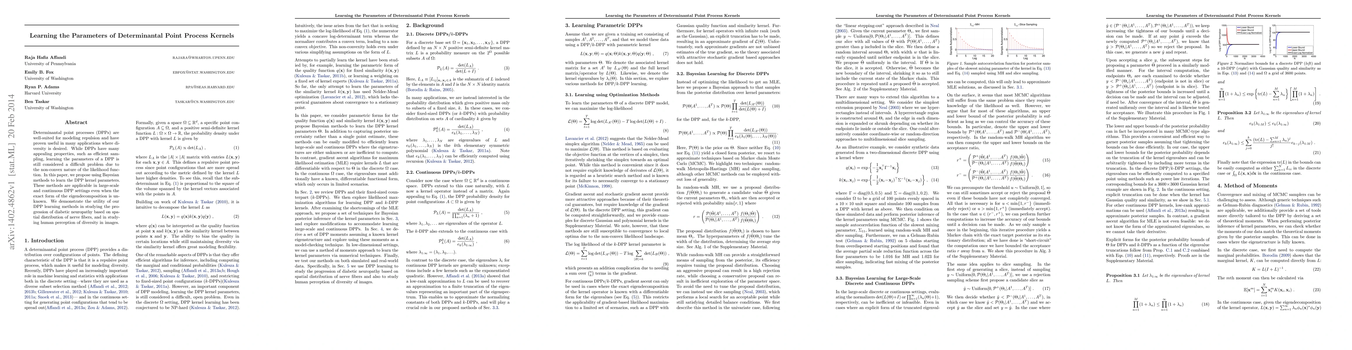 Researchers propose using Bayesian methods to learn parameters of determinantal point processes (DPPs), improving their utility in applications requiring diversity, such as studying diabetic neuropathy and human perception of diversity in images.