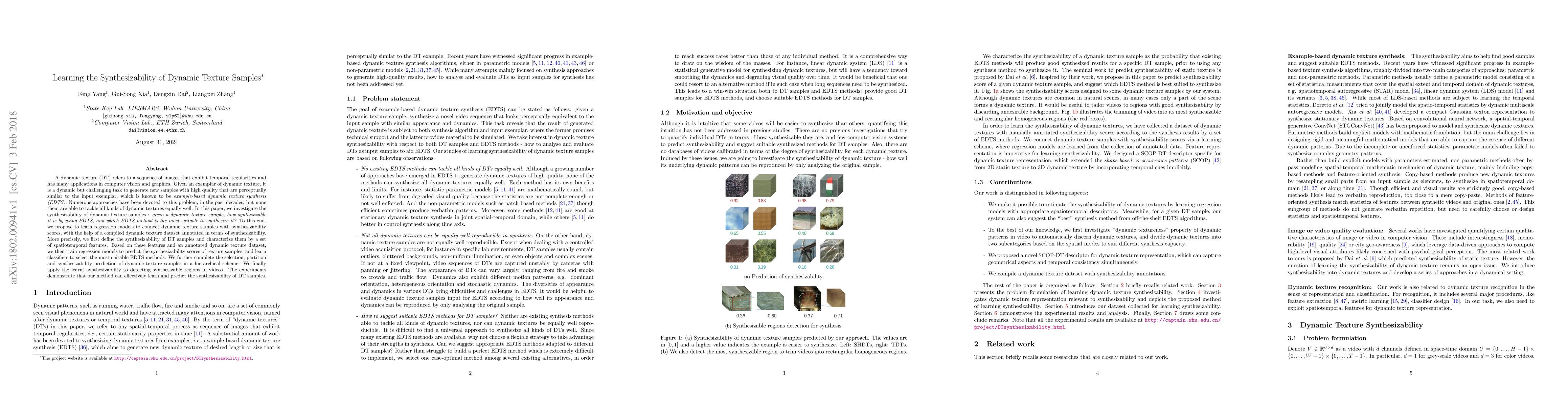 A dynamic texture (DT) refers to a sequence of images that exhibit temporal regularities and has many applications in computer vision and graphics. Given an exemplar of dynamic texture, it is a dynamic but challenging task to generate new samples with high quality that are perceptually similar to the input exemplar, which is known to be {\em example-based dynamic texture synthesis (EDTS)}. Numerous approaches have been devoted to this problem, in the past decades, but none them are able to tackle all kinds of dynamic textures equally well. In this paper, we investigate the synthesizability of dynamic texture samples: {\em given a dynamic texture sample, how synthesizable it is by using EDTS, and which EDTS method is the most suitable to synthesize it?} To this end, we propose to learn regression models to connect dynamic texture samples with synthesizability scores, with the help of a compiled dynamic texture dataset annotated in terms of synthesizability. More precisely, we first define the synthesizability of DT samples and characterize them by a set of spatiotemporal features. Based on these features and an annotated dynamic texture dataset, we then train regression models to predict the synthesizability scores of texture samples and learn classifiers to select the most suitable EDTS methods. We further complete the selection, partition and synthesizability prediction of dynamic texture samples in a hierarchical scheme. We finally apply the learned synthesizability to detecting synthesizable regions in videos. The experiments demonstrate that our method can effectively learn and predict the synthesizability of DT samples.