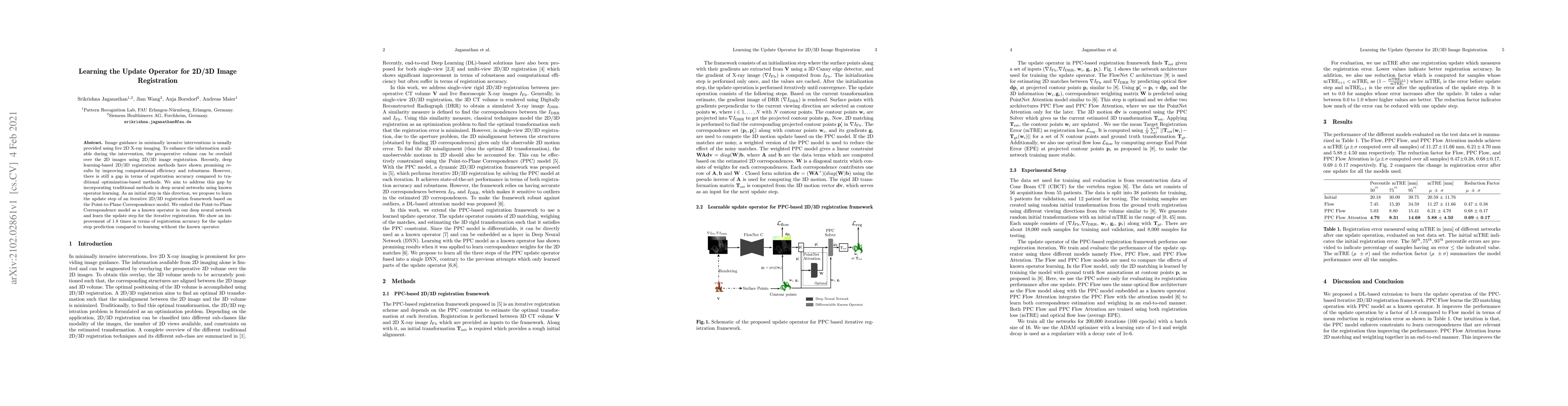 This paper proposes a method to enhance 2D/3D image registration for minimally invasive interventions by learning the update operator within an iterative framework using deep learning. The integration of a Point-to-Plane Correspondence model as a known operator in the neural network improves registration accuracy by 1.8 times compared to purely data-driven approaches.