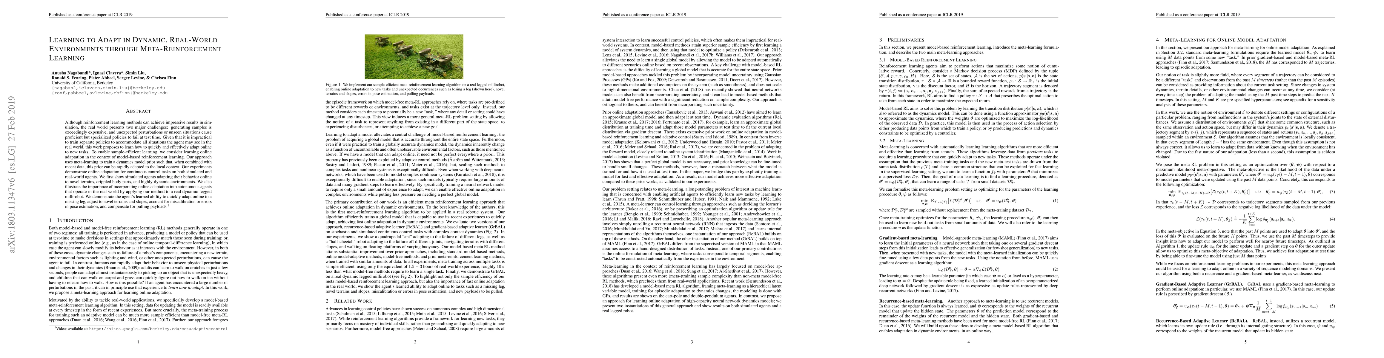 This research paper proposes a method for learning to adapt in dynamic environments through meta-reinforcement learning, allowing agents to quickly adjust to new situations, improving their performance on both simulated and real-world tasks.