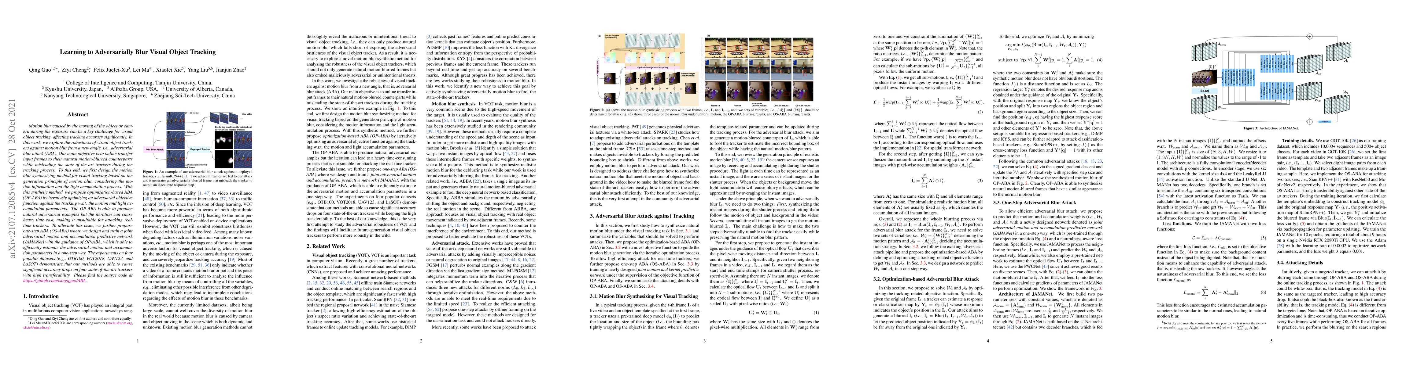 This paper proposes adversarial blur attacks (ABA) to challenge visual object tracking systems by generating natural motion-blurred frames that mislead trackers. It introduces an optimization-based ABA (OP-ABA) and a more efficient one-step ABA (OS-ABA) using JAMANet, demonstrating significant drops in tracking accuracy across multiple datasets.