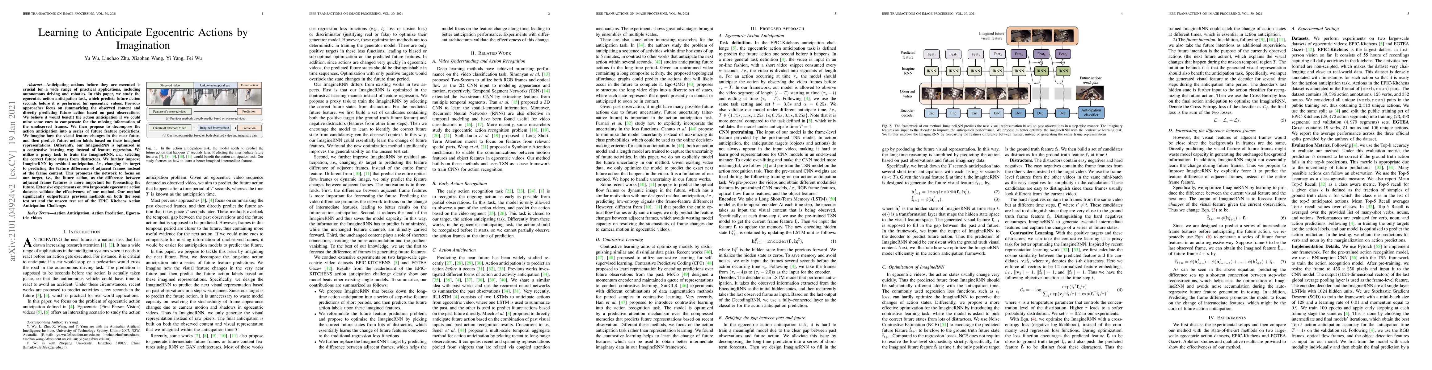 This research paper proposes a new method to predict future actions in videos before they happen, called ImagineRNN, which uses a contrastive learning approach to improve accuracy. The method significantly outperforms previous methods on two large-scale action anticipation datasets.