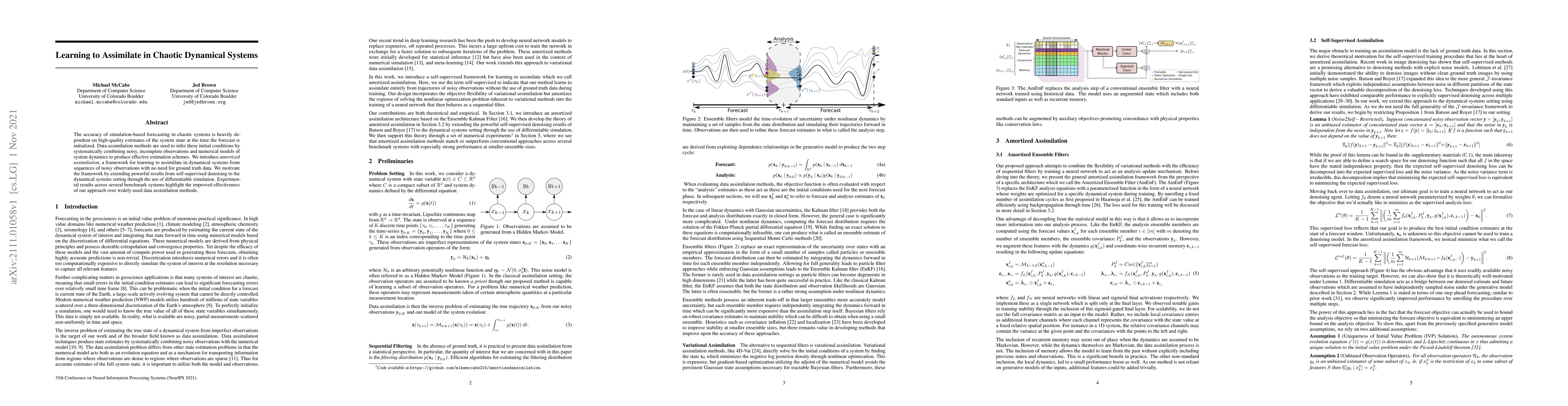 The paper presents amortized assimilation, a framework that learns to assimilate in dynamical systems using differentiable simulation and self-supervised learning, bypassing the need for ground truth data.