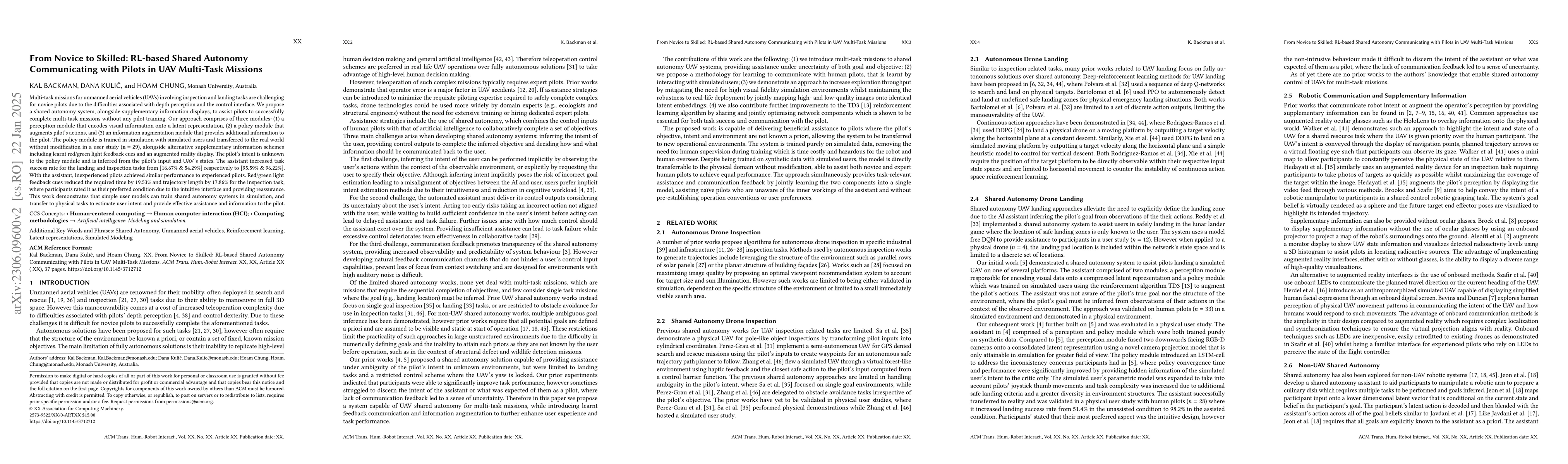 This study employed a reinforcement learning-based approach to develop an autonomous UAV system with shared autonomy capabilities.