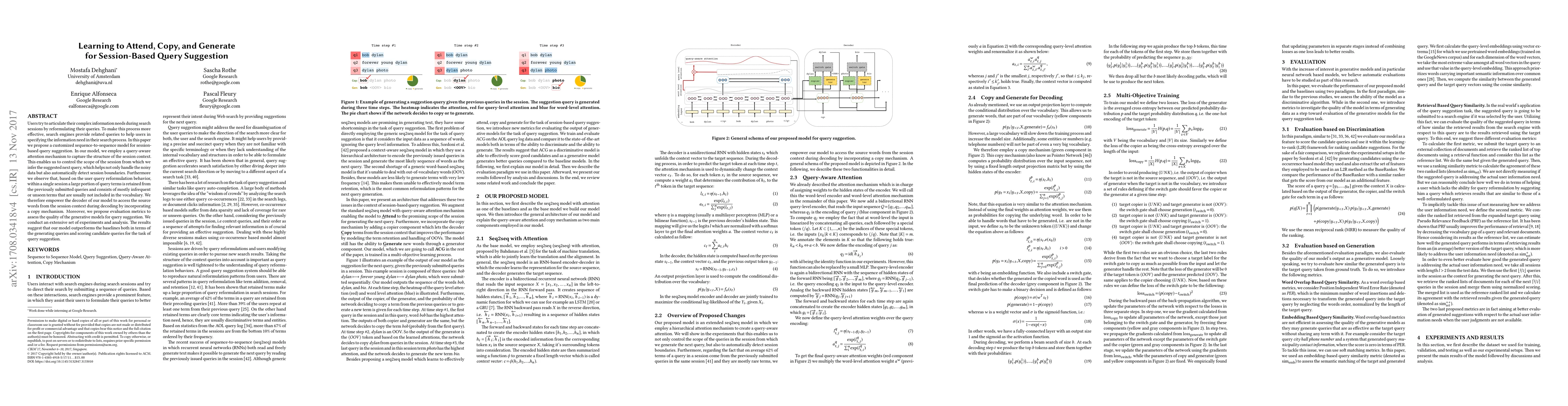 This paper proposes a sequence-to-sequence model with a query-aware attention mechanism and a copy mechanism to enhance session-based query suggestion. The model effectively handles noisy data and session boundaries, generating more accurate and relevant queries compared to baselines.