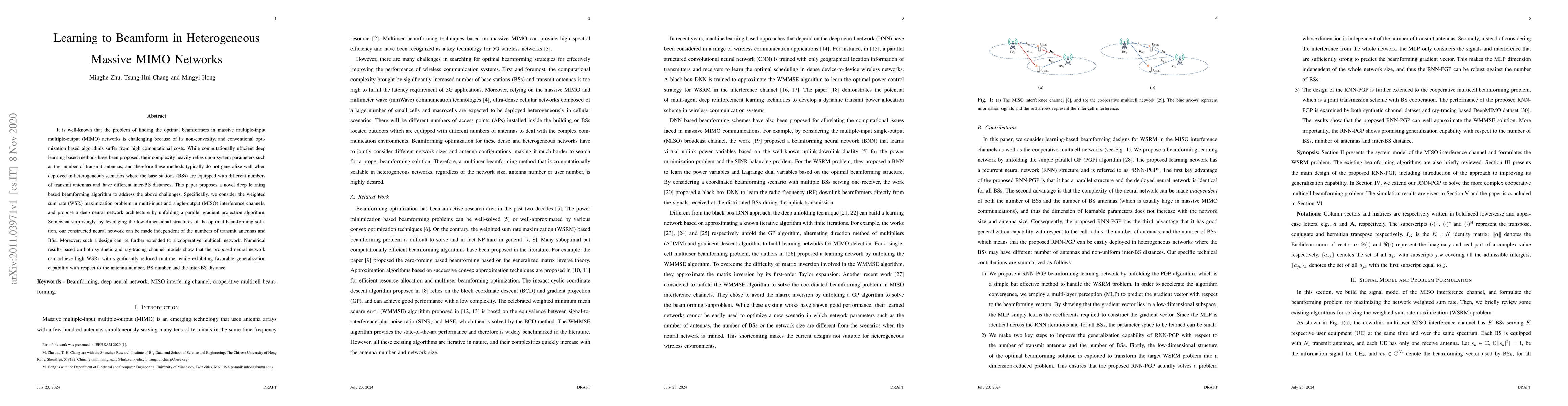 It is well-known that the problem of finding the optimal beamformers in massive multiple-input multiple-output (MIMO) networks is challenging because of its non-convexity, and conventional optimization based algorithms suffer from high computational costs. While computationally efficient deep learning based methods have been proposed, their complexity heavily relies upon system parameters such as the number of transmit antennas, and therefore these methods typically do not generalize well when deployed in heterogeneous scenarios where the base stations (BSs) are equipped with different numbers of transmit antennas and have different inter-BS distances. This paper proposes a novel deep learning based beamforming algorithm to address the above challenges. Specifically, we consider the weighted sum rate (WSR) maximization problem in multi-input and single-output (MISO) interference channels, and propose a deep neural network architecture by unfolding a parallel gradient projection algorithm. Somewhat surprisingly, by leveraging the low-dimensional structures of the optimal beamforming solution, our constructed neural network can be made independent of the numbers of transmit antennas and BSs. Moreover, such a design can be further extended to a cooperative multicell network. Numerical results based on both synthetic and ray-tracing channel models show that the proposed neural network can achieve high WSRs with significantly reduced runtime, while exhibiting favorable generalization capability with respect to the antenna number, BS number and the inter-BS distance.