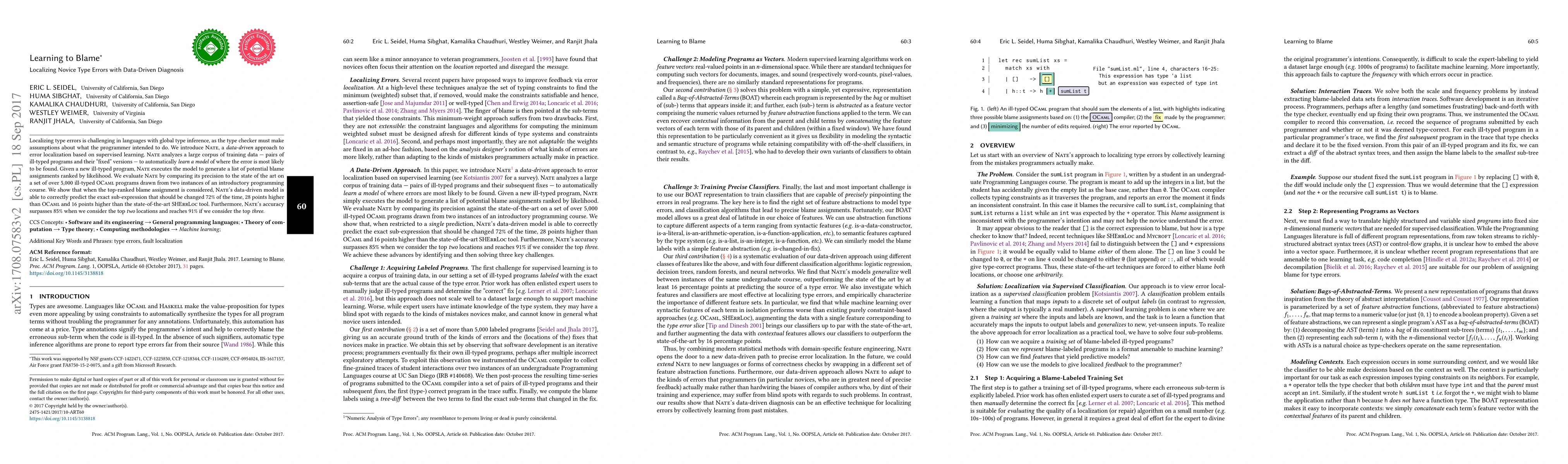 A new data-driven approach called Nate accurately localizes 72% of type errors in programming languages, surpassing state-of-the-art tools.