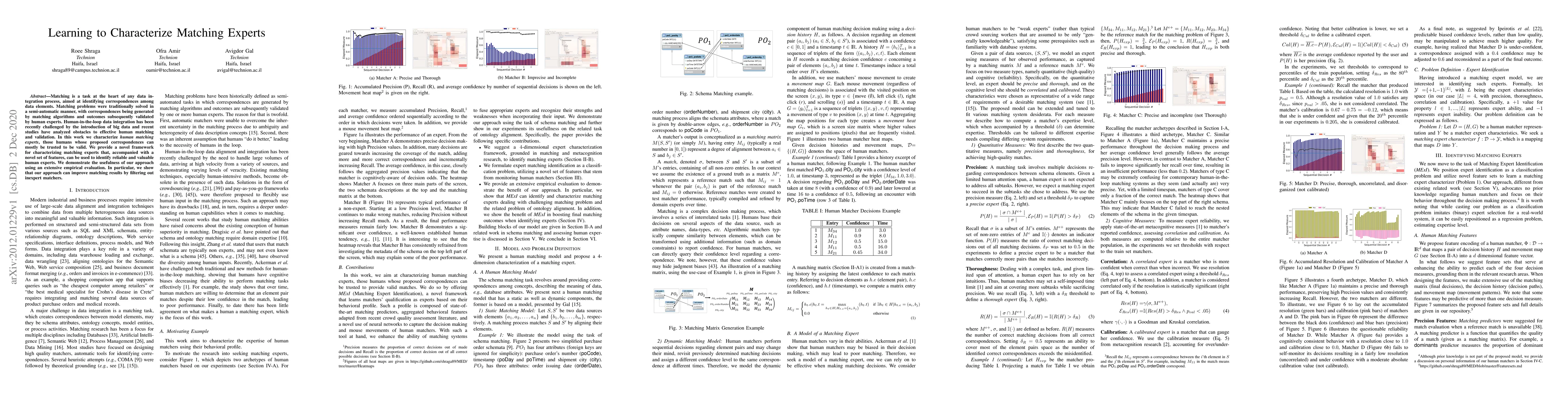Matching is a task at the heart of any data integration process, aimed at identifying correspondences among data elements. Matching problems were traditionally solved in a semi-automatic manner, with correspondences being generated by matching algorithms and outcomes subsequently validated by human experts. Human-in-the-loop data integration has been recently challenged by the introduction of big data and recent studies have analyzed obstacles to effective human matching and validation. In this work we characterize human matching experts, those humans whose proposed correspondences can mostly be trusted to be valid. We provide a novel framework for characterizing matching experts that, accompanied with a novel set of features, can be used to identify reliable and valuable human experts. We demonstrate the usefulness of our approach using an extensive empirical evaluation. In particular, we show that our approach can improve matching results by filtering out inexpert matchers.
