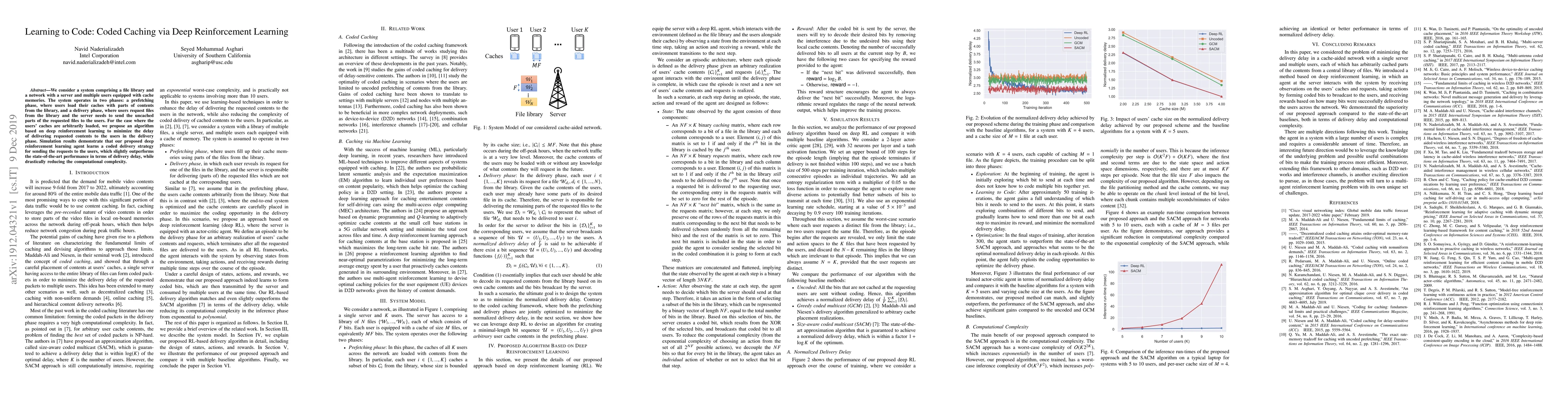 This paper proposes a deep reinforcement learning algorithm to optimize coded caching in a network system, minimizing delivery delay during content requests. Simulation results show that the approach effectively reduces computational complexity while achieving slightly better performance compared to existing methods.