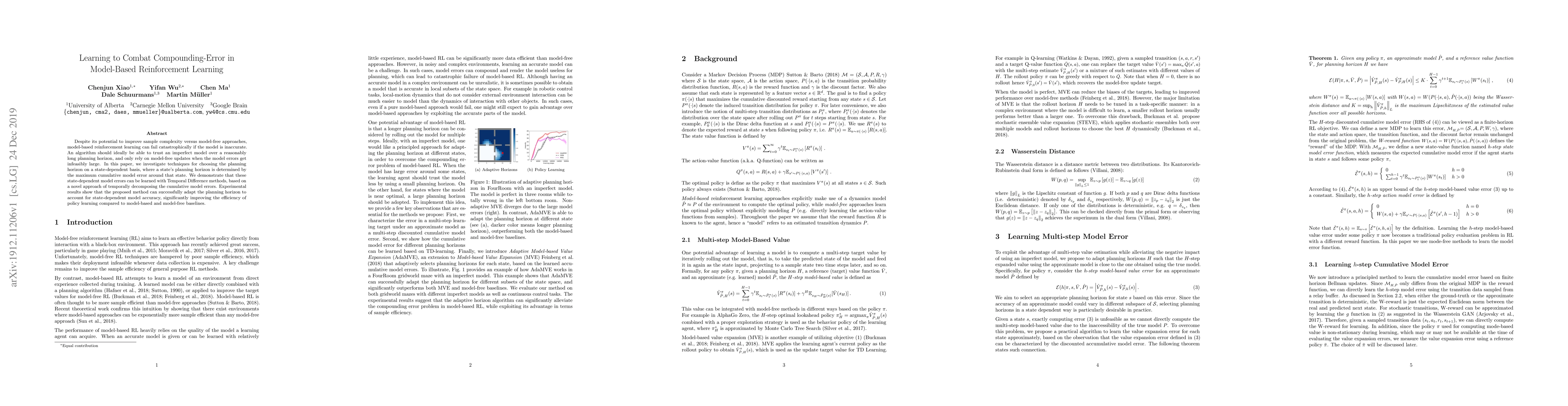 Despite its potential to improve sample complexity versus model-free approaches, model-based reinforcement learning can fail catastrophically if the model is inaccurate. An algorithm should ideally be able to trust an imperfect model over a reasonably long planning horizon, and only rely on model-free updates when the model errors get infeasibly large. In this paper, we investigate techniques for choosing the planning horizon on a state-dependent basis, where a state's planning horizon is determined by the maximum cumulative model error around that state. We demonstrate that these state-dependent model errors can be learned with Temporal Difference methods, based on a novel approach of temporally decomposing the cumulative model errors. Experimental results show that the proposed method can successfully adapt the planning horizon to account for state-dependent model accuracy, significantly improving the efficiency of policy learning compared to model-based and model-free baselines.
